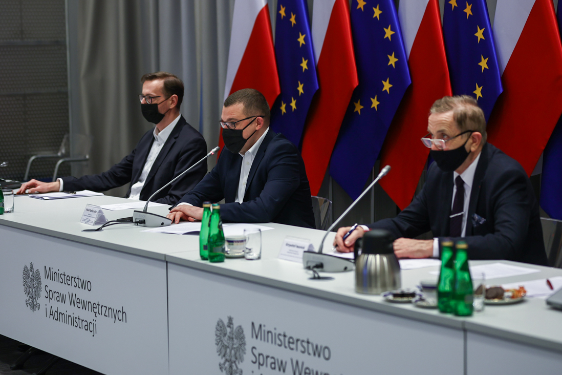 Wiceminister Paweł Szefernaker wspólnie z Krzysztofem Iwaniukiem, wójtem gminy Terespol, przewodniczącym Związku Gmin Wiejskich RP, współprzewodniczyli dzisiejszemu (15 grudnia br.) posiedzeniu Komisji Wspólnej Rządu i Samorządu Terytorialnego. Komisja obradowała w trybie hybrydowym.