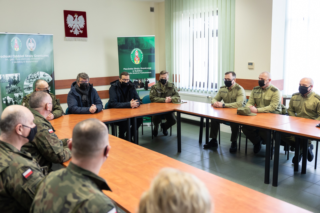 Przed konferencją prasową premier Mateusz Morawiecki, wiceminister Maciej Wąsik oraz gen. dyw. SG Tomasz Praga - komendant główny Straży Granicznej uczestniczyli w odprawie z funkcjonariuszami Policji, Straży Granicznej i żołnierzami. W odprawie wzięli również udział m.in.: gen. dyw. Krzysztof Radomski - dowódca 16. Pomorskiej Dywizji Zmechanizowanej, gen. bryg. SG Andrzej Jakubaszek - komendant Podlaskiego Oddziału Straży Granicznej oraz insp. Jacek Kumpiałowski – zastępca komendanta wojewódzkiego Policji w Białymstoku.