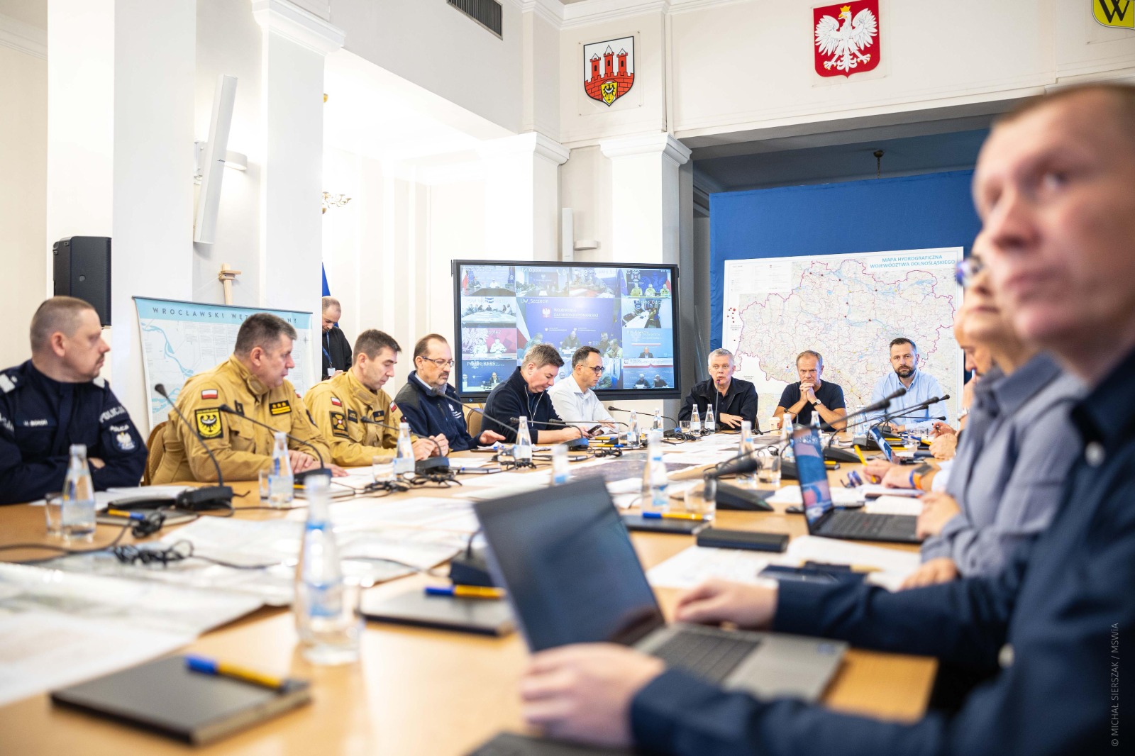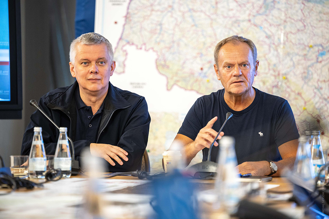 - Chcę Was zapewnić, że to jest dla nas w tej chwili cel numer jeden, aby przez najbliższe dni, tygodnie, jeśli będzie trzeba miesiące, dostarczać skutecznie pomoc. Za pośrednictwem ludzi, sprzętu i pieniędzy - wszędzie tam, gdzie powódź zebrała okrutne żniwo – powiedział premier podczas środowego sztabu kryzysowego we Wrocławiu. W posiedzeniu wziął udział szef MSWiA Tomasz Siemoniak.
