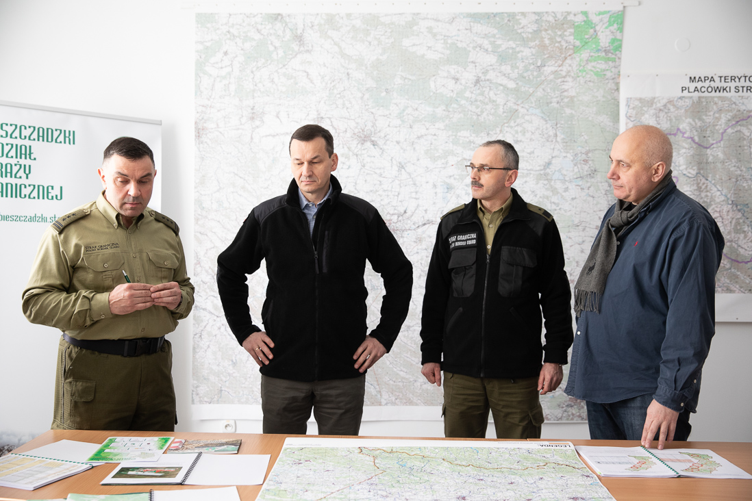 Premier Mateusz Morawiecki, Joachim Brudziński, szef resortu spraw wewnętrznych i administracji oraz wiceminister Krzysztof Kozłowski spotkali się ze strażnikami w Placówce Straży Granicznej w Huwnikach. – Polska jest dzisiaj przedmurzem dla wszelkiego rodzaju niebezpieczeństw, a Straż Graniczna jest obrońcą naszych granic – powiedział premier Mateusz Morawiecki.
