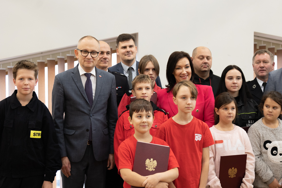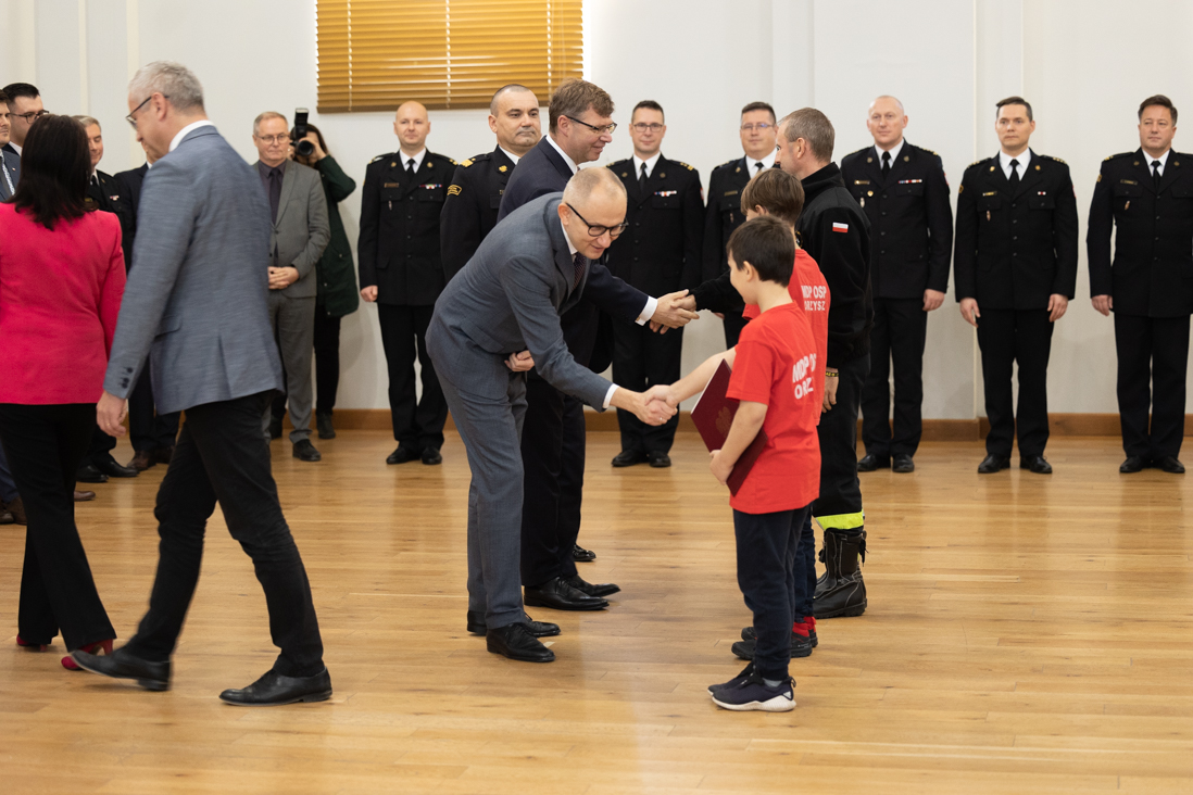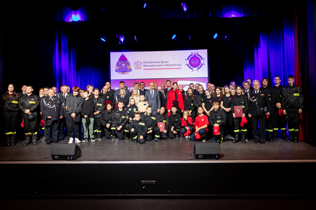 Promesy dla młodzieżowych drużyn pożarniczych z Warmii i Mazur - uroczystości z udziałem wiceministra Błażeja Pobożego