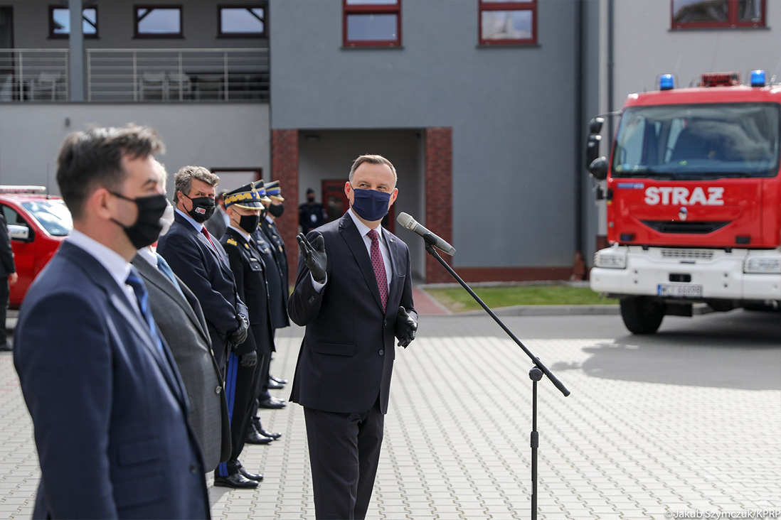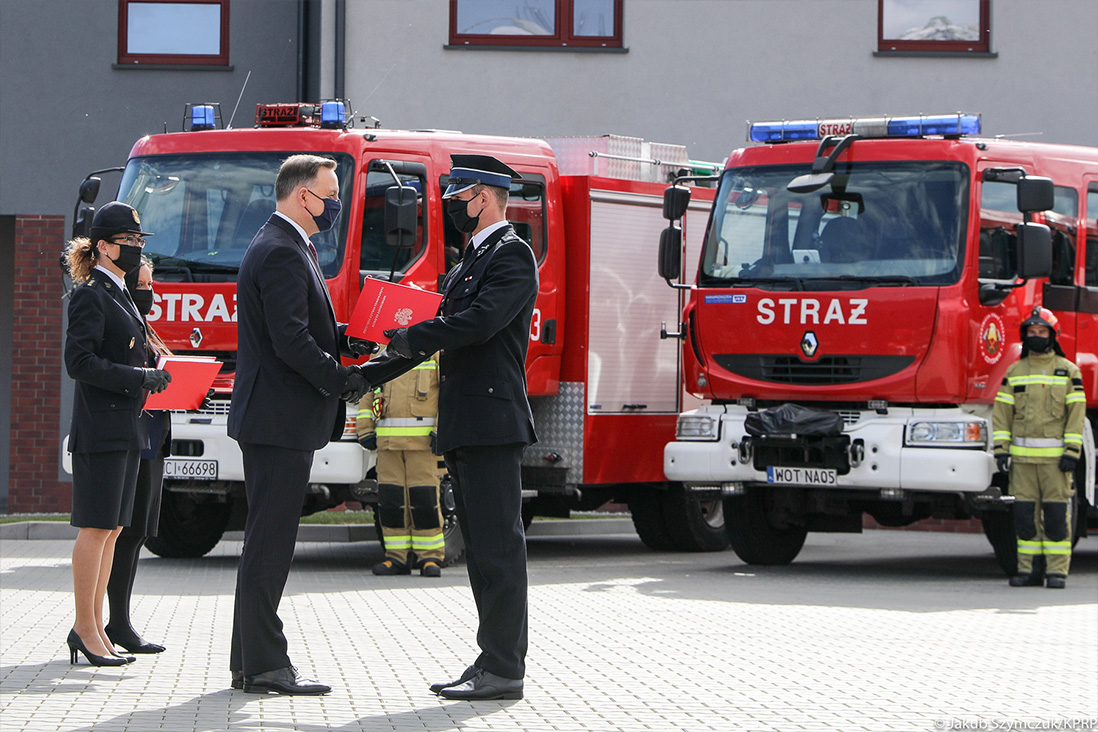 Prezydent Andrzej Duda podkreślił, że służba strażaków ochotników ma wielkie znaczenie dla budowy systemu bezpieczeństwa Polski.