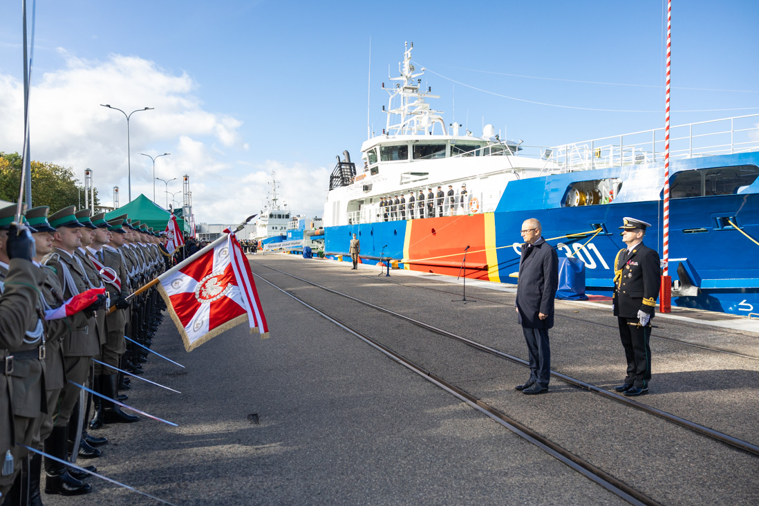 Dziś, 12 października br. w Gdańsku wiceminister Błażej Poboży wziął udział w uroczystości przekazania Straży Granicznej nowej jednostki pływającej SG-301. Jest to pełnomorska jednostka patrolowa OPV, która pomoże funkcjonariuszom Morskiego Oddziału Straży Granicznej w ich codziennej służbie. W wydarzeniu wzięli także udział Marszałek Sejmu RP Elżbieta Witek oraz Komendant Główny Straży Granicznej gen. dyw. SG Tomasz Praga.