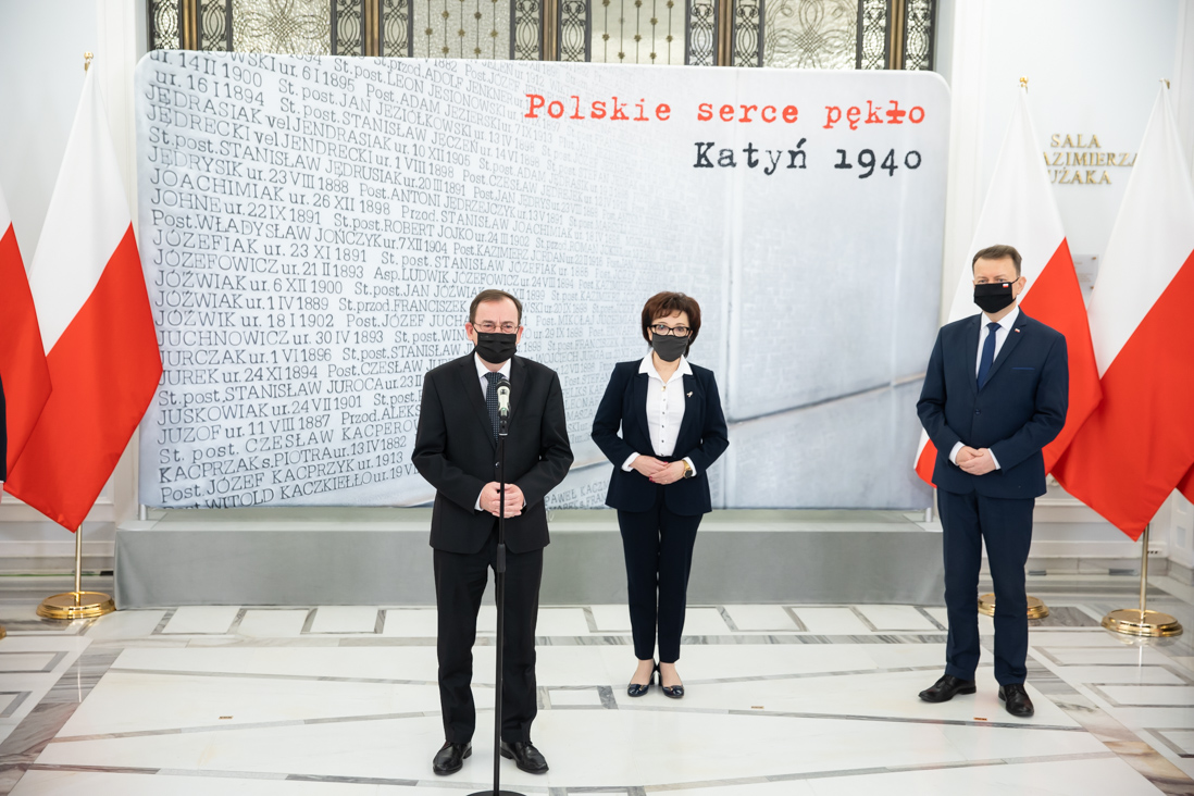 Szef MSWiA Mariusz Kamiński powiedział, że pamięć o tej zbrodni jest niezwykle ważna i żywa, ale musimy cały czas o nią zabiegać. - Wiele osób było represjonowanych z tego tytułu, że mówiło, jaka była prawda - kto mordował w Katyniu, a kto ginął w Katyniu. Dziś wydaje się, że sprawy są oczywiste, że fakty są oczywiste i jasne. Niestety w putinowskiej Rosji giną tablice poświęcone ofiarom Zbrodni Katyńskiej, niestety w putinowskiej Rosji odbywają się pseudonaukowe konferencje dotyczące Zbrodni Katyńskiej - powiedział minister. Przypomniał również, że wśród ofiar byli nie tylko żołnierze, ale i tysiące przedwojennych policjantów.