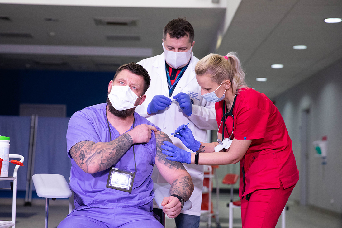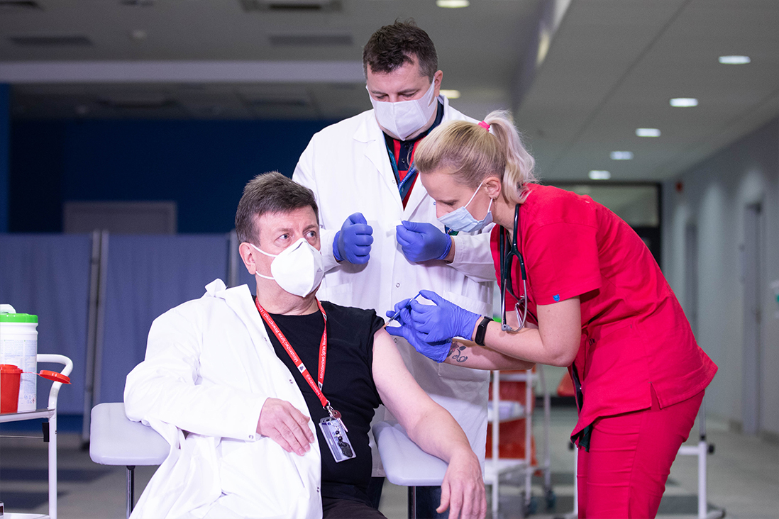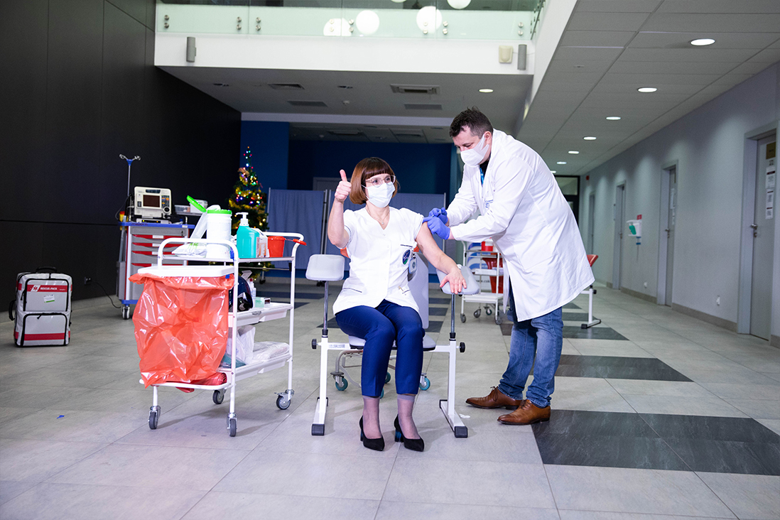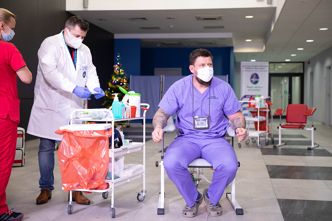W niedzielę (27 grudnia br.) w Centralnym Szpitalu Klinicznym MSWiA w Warszawie zaszczepiono pierwszą osobę przeciwko COVID-19. Była nią Alicja Jakubowska, naczelna pielęgniarka CSK MSWiA. Zaszczepił ją dr Artur Zaczyński, wicedyrektor szpitala. Tym samym rozpoczęto Narodowy Program Szczepień przeciw COVID-19.