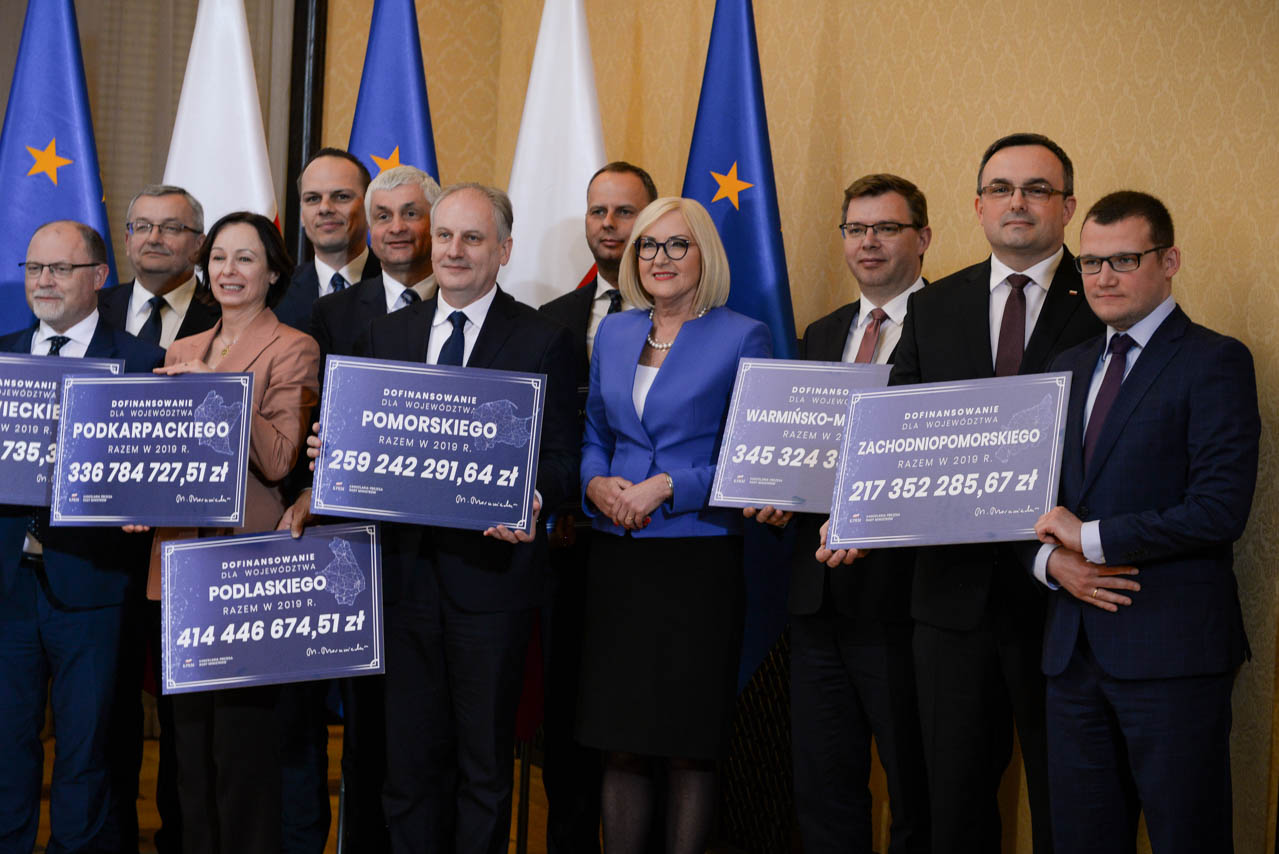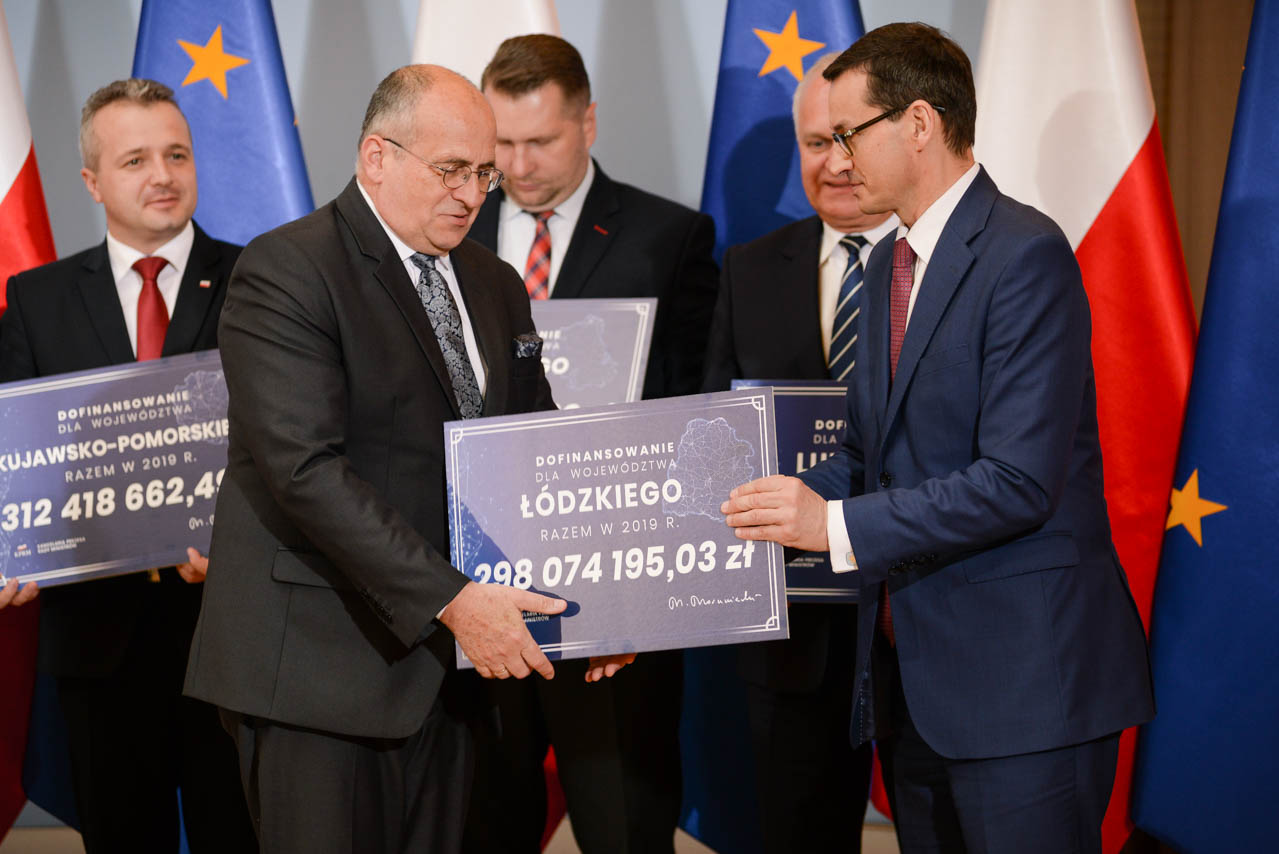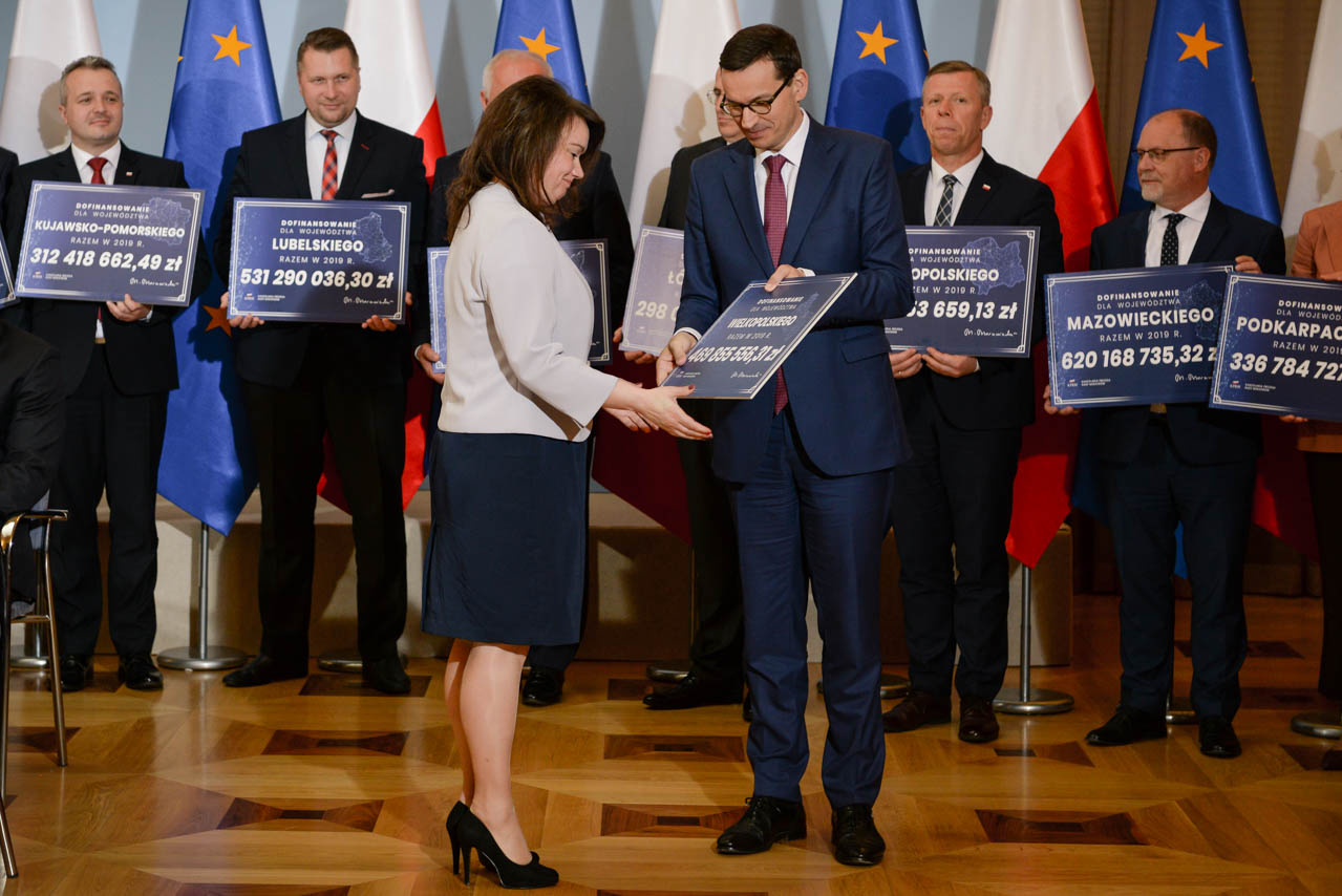 Premier Mateusz Morawiecki wręczył wojewodom czeki na dofinansowanie inwestycji w ramach Funduszu Dróg Samorządowych. W spotkaniu w Kancelarii Prezesa Rady Ministrów uczestniczył minister infrastruktury Andrzej Adamczyk oraz sekretarz stanu w MSWiA Paweł Szefernaker.