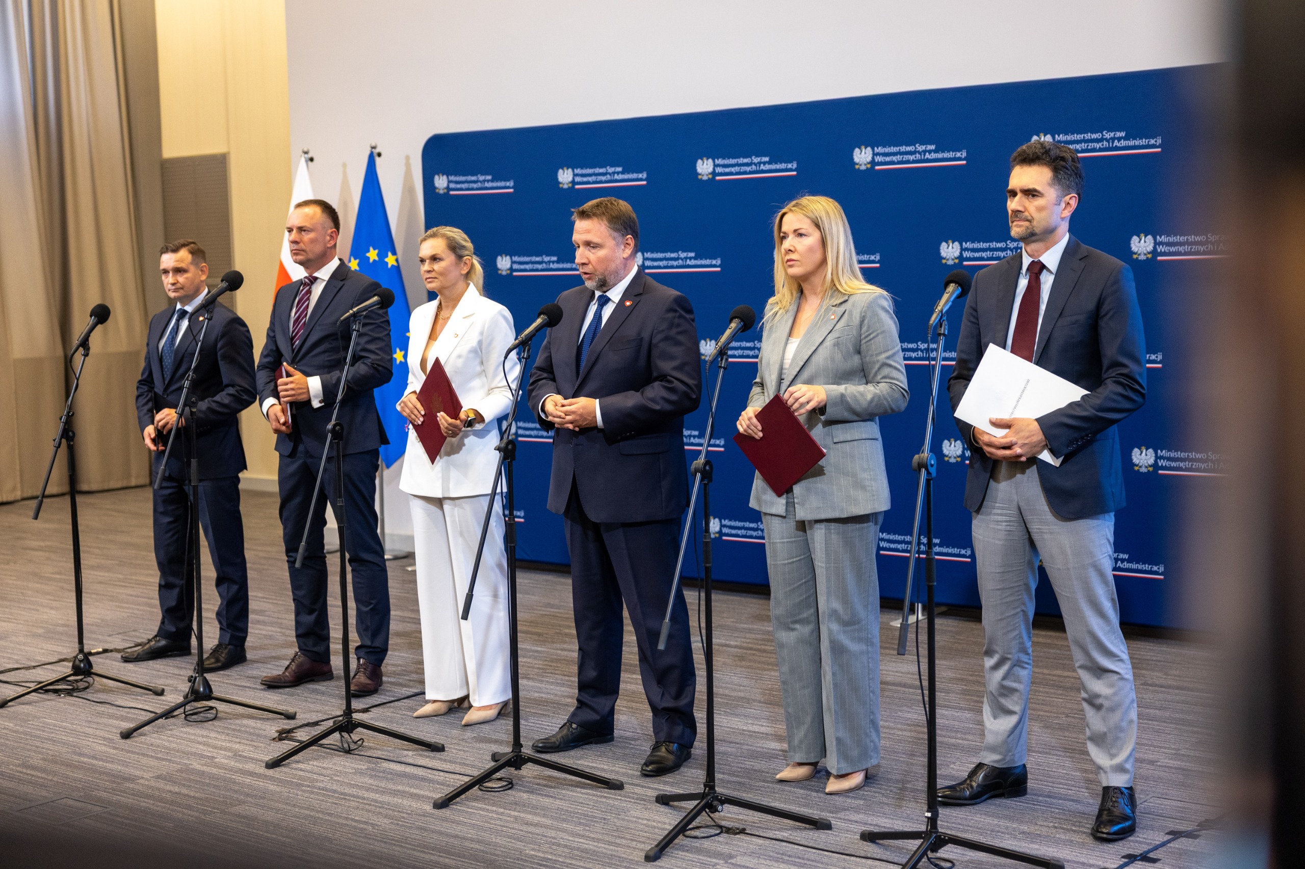 W konferencji prasowej w MSWiA wzięli również udział: minister edukacji Barbara Nowacka, a także wiceministrowie Piotr Malepszak (Ministerstwo Infrastruktury), Piotr Borys (Ministerstwo Sportu i Turystyki) oraz Michał Jaros (Ministerstwo Rozwoju i Technologii).
