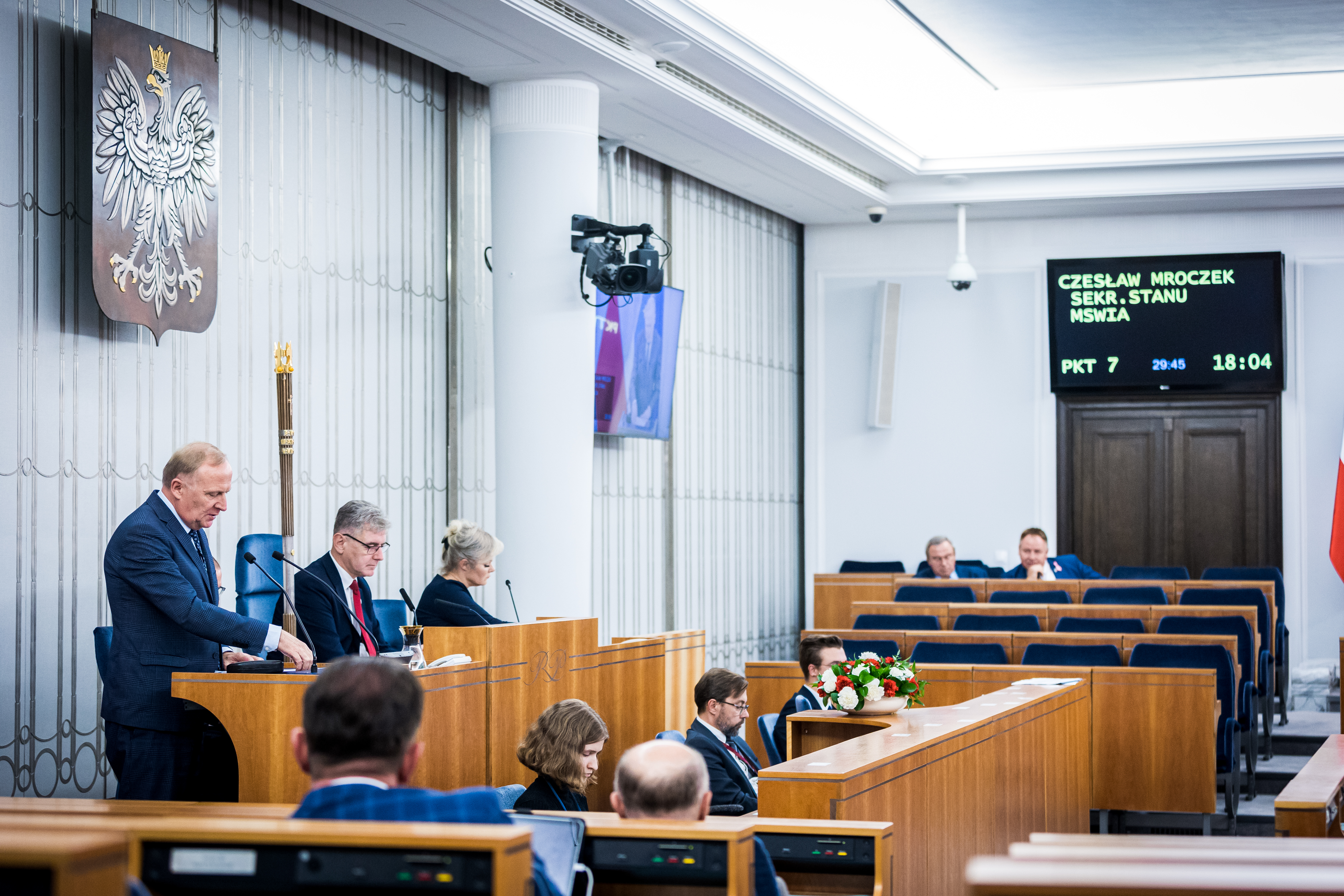 - Ta ustawa jest elementem naszych działań związanych z odbudową potencjału zarówno Policji, jak i Straży Granicznej - powiedział wiceminister Czesław Mroczek w Senacie. W środę 9 października br. izba wyższa polskiego parlamentu rozpatrzyła ustawę o zmianie niektórych ustaw w związku z utworzeniem oddziałów o profilu mundurowym oraz ułatwieniem powrotu do służby w Policji i Straży Granicznej.