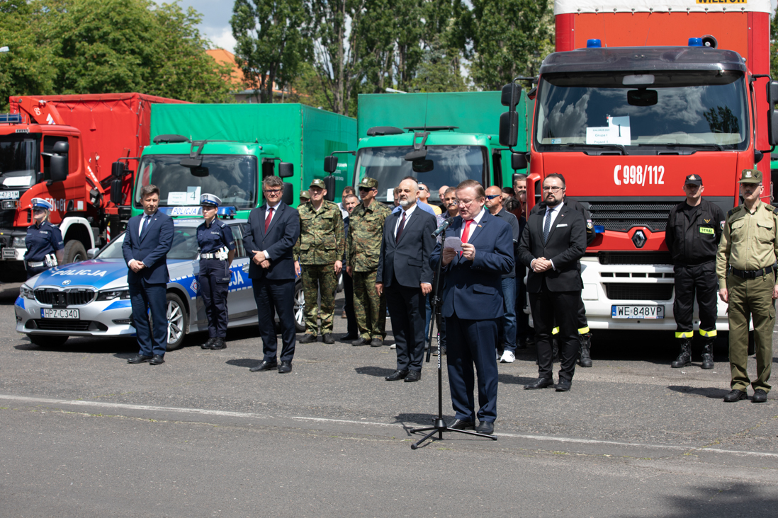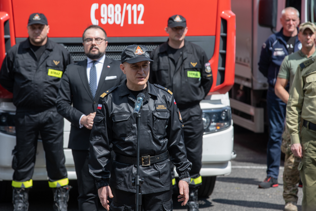 W ramach pomocy w walce z pandemią koronawirusa, Polska wysłała na Białoruś transport z 300 tonami sprzętu i środków ochrony. W konwoju pomocy humanitarnej biorą udział funkcjonariusze i pojazdy Państwowej Straży Pożarnej, Policji oraz Straży Granicznej. 4 czerwca br., w dniu wyjazdu konwoju, wiceminister Maciej Wąsik wziął udział w briefingu prasowym zorganizowanym z tej okazji.
