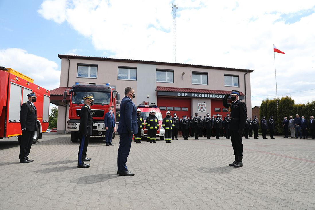 W Przesiadłowie w województwie łódzkim wiceminister Maciej Wąsik wręczył przedstawicielom OSP w Przesiadłowie i Ujeździe promesy, które stanowią dodatkowe środki na działalność ratowniczo-gaśniczą oraz związaną z zapobieganiem Covid-19.