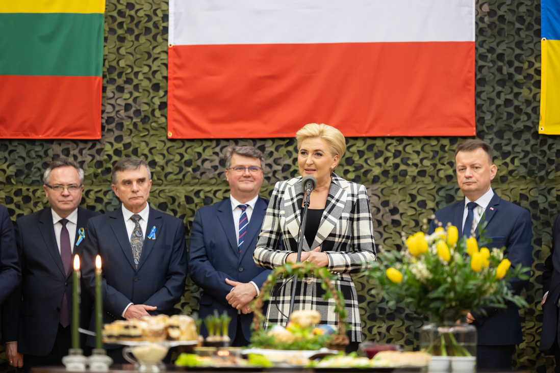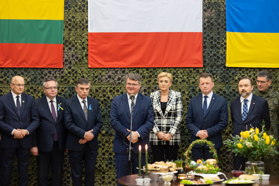 – To dla mnie wielki zaszczyt, ze mogę dzisiaj w imieniu swoim oraz ministra Mariusza Kamińskiego podziękować Wam za Waszą służbę i złożyć wielkanocne życzenia - powiedział wiceszef MSWiA Maciej Wąsik do funkcjonariuszy i żołnierzy. W środę, 13 kwietnia br. w Litewsko-Polsko-Ukraińskiej Brygadzie w Lublinie odbyło się spotkanie wielkanocne z udziałem Pierwszej Damy Agaty Kornhauser-Dudy oraz szefa MON Mariusza Błaszczaka.