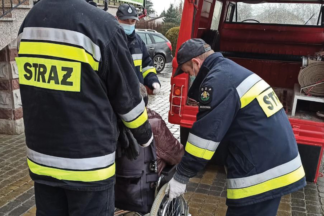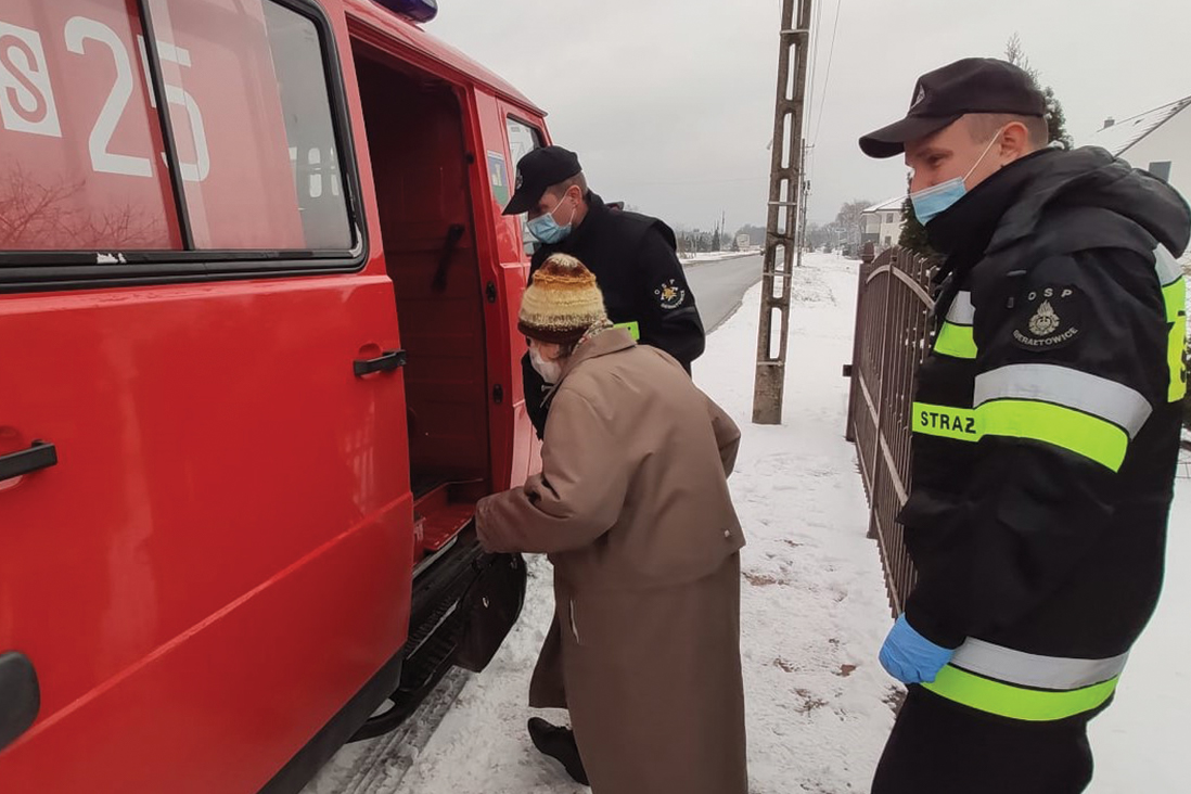 Strażacy pomagają w dowozie do punktów szczepień przeciw Covid-19