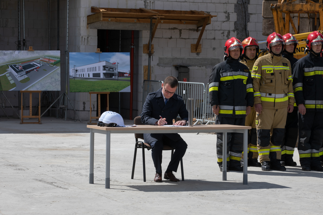 Minister Joachim Brudziński wraz z wiceministrem Pawłem Szefernakerem wzięli udział w uroczystości wmurowania aktu erekcyjnego pod budowę Jednostki Ratowniczo - Gaśniczej nr 1 w Koszalinie. Szacowany całkowity koszt inwestycji to niemal 15,4 mln zł.