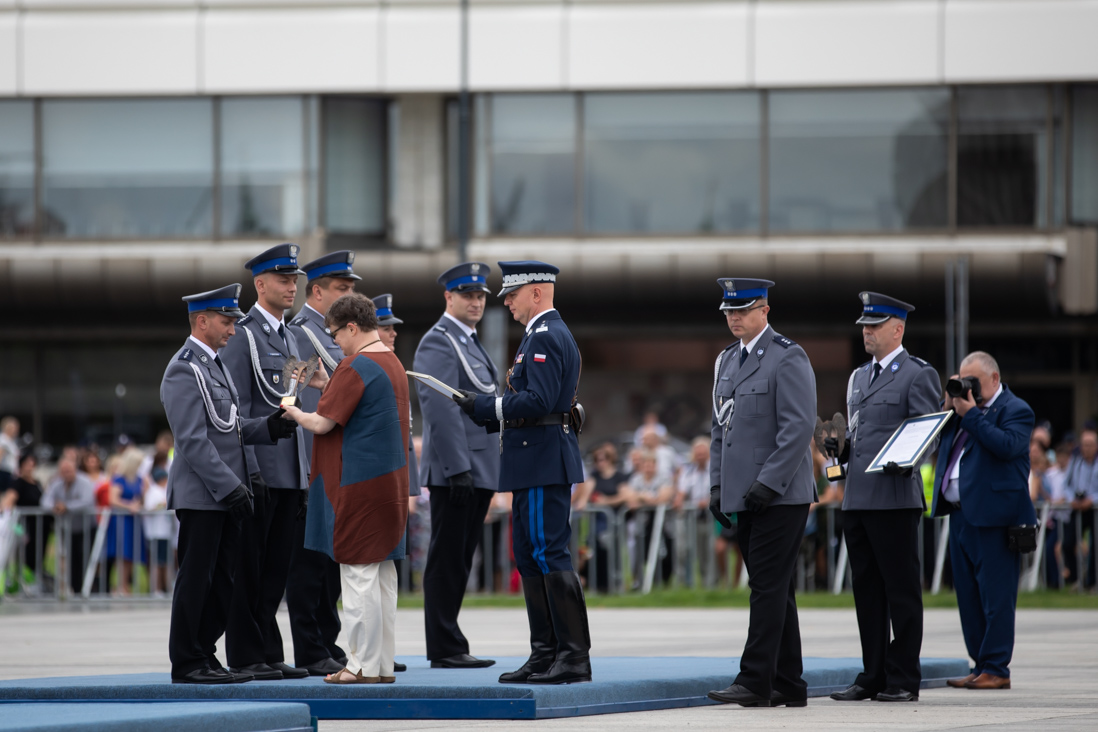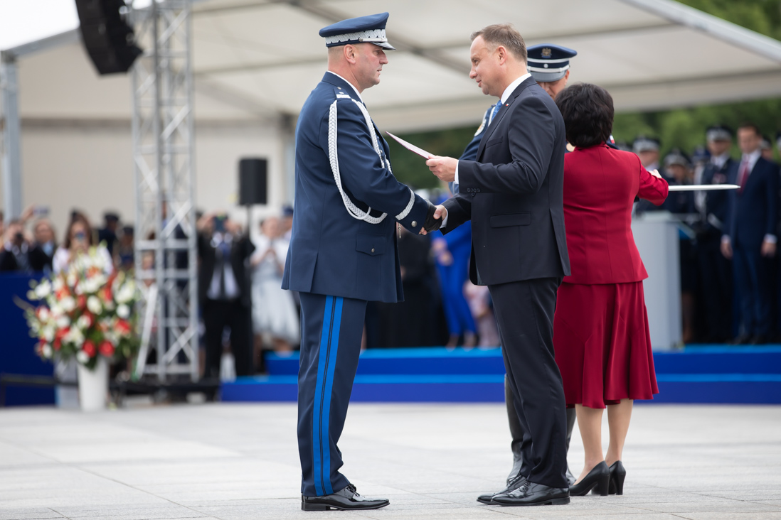 Podczas centralnych obchodów Święta Policji prezydent Andrzej Duda oraz Elżbieta Witek, minister spraw wewnętrznych i administracji wręczyli nominacje generalskie oraz szable komendantom wojewódzkim Policji. Otrzymali je: insp. Tomasz Klimek– komendant wojewódzki Policji w Olsztynie, insp. Andrzej Łapiński – komendant wojewódzki Policji w Łodzi, insp. Henryk Moskwa – komendant wojewódzki Policji w Rzeszowie oraz insp. Paweł Dzierżak - komendant wojewódzki Policji w Kielcach. Funkcjonariuszki i funkcjonariusze - absolwenci Wyższej Szkoły Policji w Szczytnie - otrzymali promocję na pierwszy stopień oficerski. Policjanci z Oddziału Prewencji Policji garnizonu stołecznego złożyli ślubowanie przed przystąpieniem do służby.