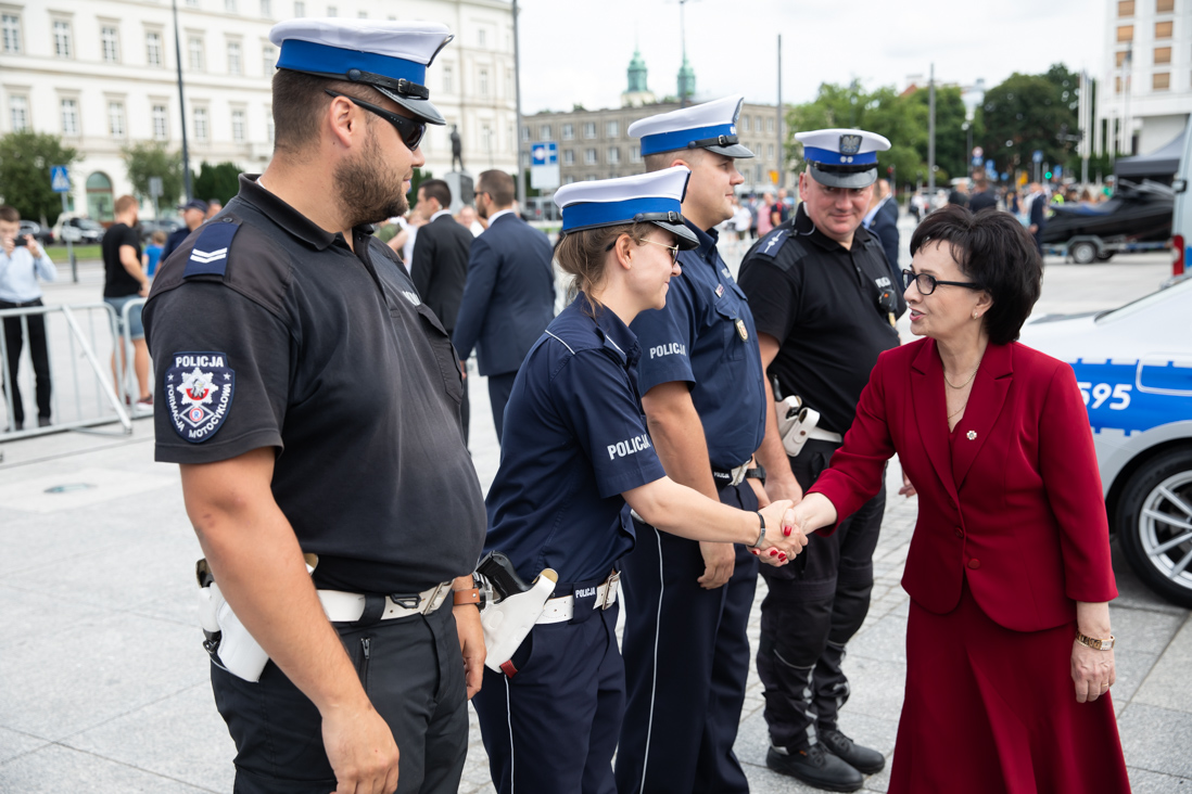 Minister Elżbieta Witek podziękowała funkcjonariuszom za ich codzienną służbę. – Służba w Policji jest ciężka, wymaga odwagi, poświęcenia, ciągłego doskonalenia się, szkolenia. I Wy to robicie. Jesteście profesjonalni. Dbacie o ład i porządek publiczny, ale przede wszystkim dbacie o bezpieczeństwo obywateli. Tylko na takim fundamencie, jakim jest bezpieczeństwo, można budować dobrą przyszłość państwa. I to Waszej, ponad 100 –tysięcznej formacji, zawdzięczamy – powiedziała szefowa MSWiA. Zapewniła, że sojusznikiem policjantów jest rząd i państwo polskie. Ich obowiązkiem jest nowoczesne wyposażenie i wyszkolenie funkcjonariuszy. M.in. na ten cel przeznaczono 9,2 mld zł w ramach drugiej edycji Programu Modernizacji Służb Mundurowych. Kolejna, trzecia edycja Programu, będzie kładła szczególny nacisk na kapitał ludzki.