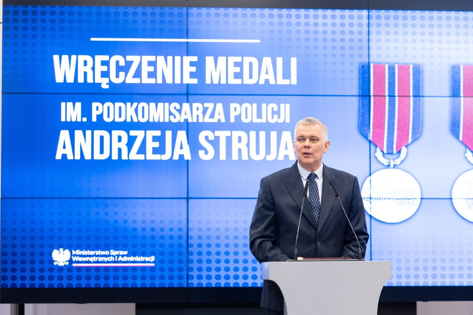 Szef MSWiA do odznaczonych medalami im. podkomisarza Policji Andrzeja Struja: Jesteście wzorem dla innych funkcjonariuszy