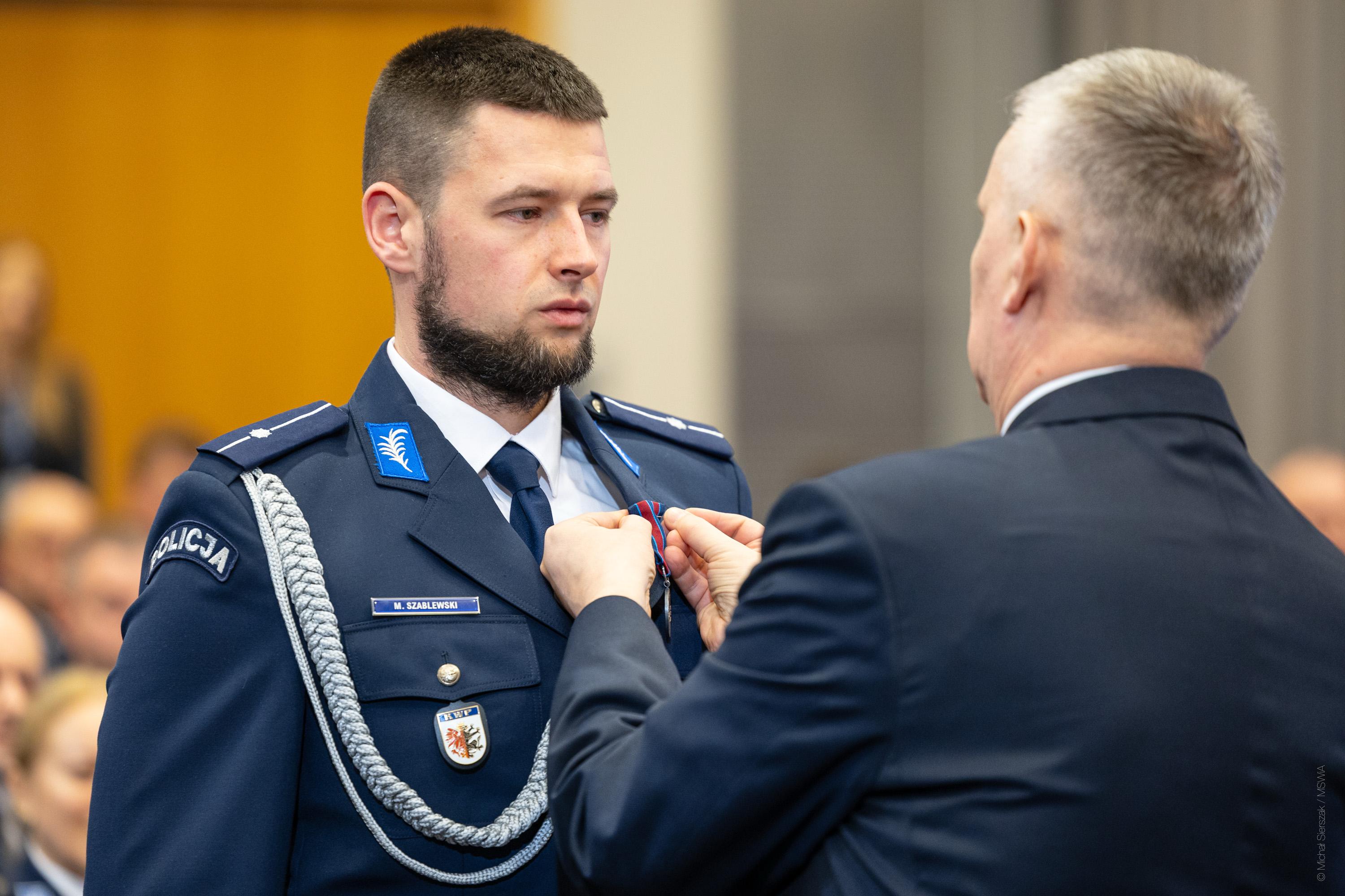Minister Tomasz Siemoniak przypomniał, że odznaczenie otrzymują policjanci, którzy wykazali się nadzwyczajną odwagą i bohaterstwem, zarówno w czasie służby jak i poza nią.
