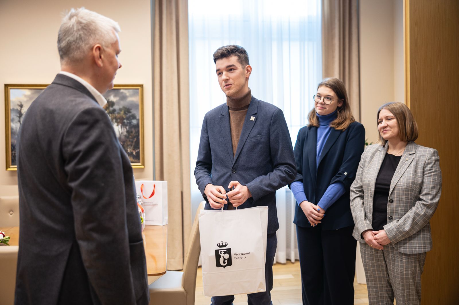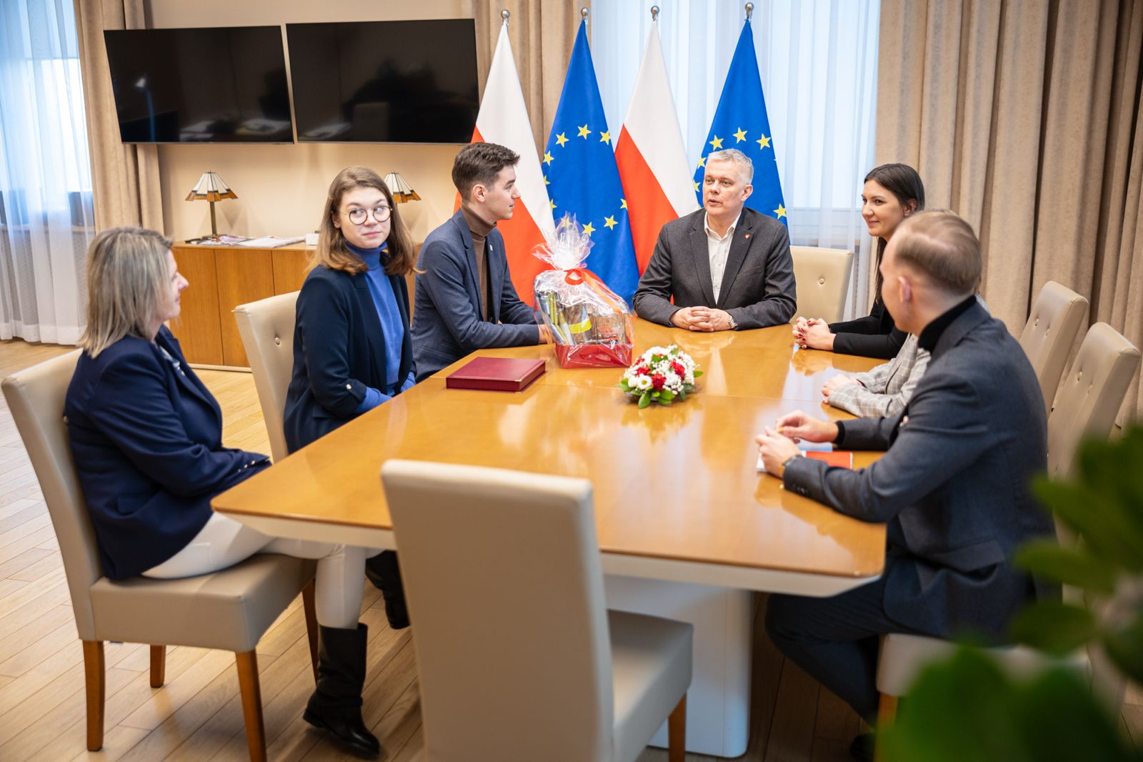 Minister Tomasz Siemoniak rozmawiał z młodzieżą o ich zaangażowaniu w sprawy społeczne oraz planach na przyszłość. Opowiedział im także o codziennej pracy ministra oraz o zadaniach resortu spraw wewnętrznych i administracji.