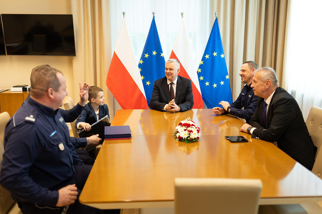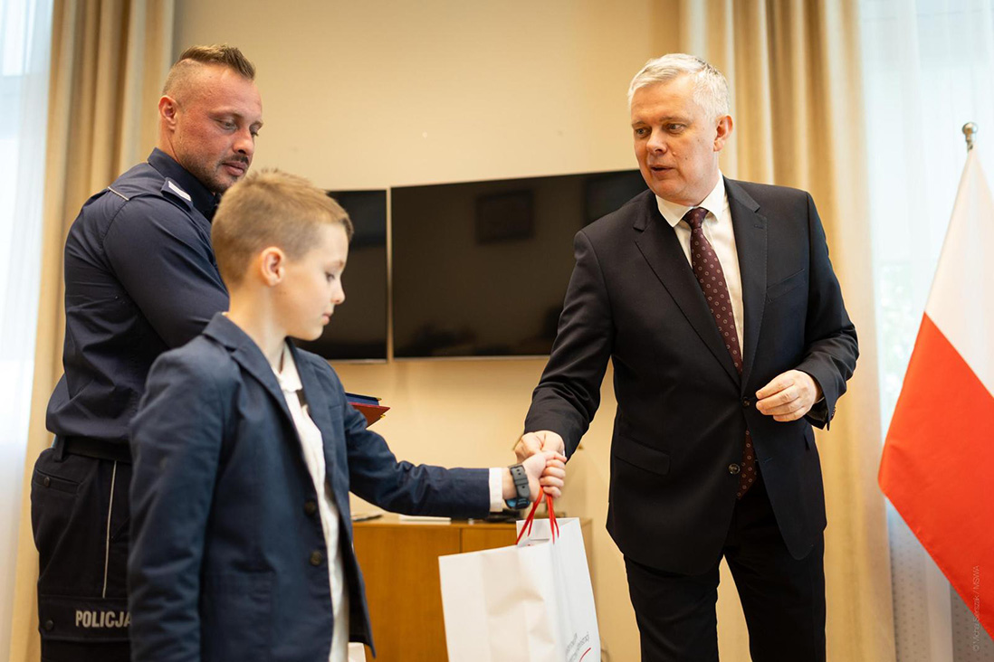 Minister spraw wewnętrznych i administracji spotkał się, w gmachu MSWiA, z sierż. szt. Konradem Klimowiczem. Pogratulował funkcjonariuszowi niezwykłej odwagi.
