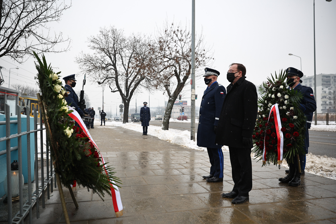 Ustanowienie odznaki to kolejne wydarzenie, które upamiętnia tragicznie zmarłego funkcjonariusza. Dzisiaj o godz. 9:30 minister Mariusz Kamiński i gen. insp. Jarosław Szymczyk złożyli kwiaty pod tablicą poświęconą podkom. Andrzejowi Strujowi, która znajduje się na warszawskiej Woli.