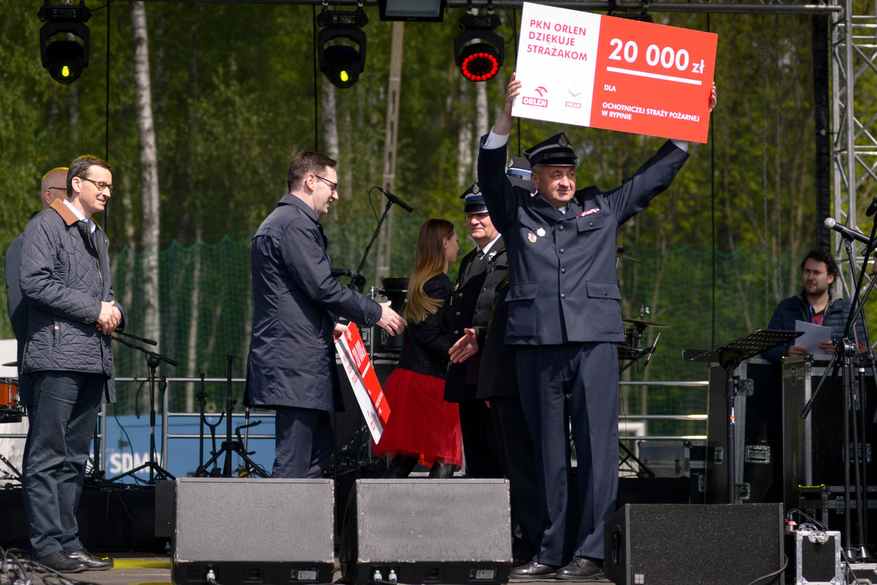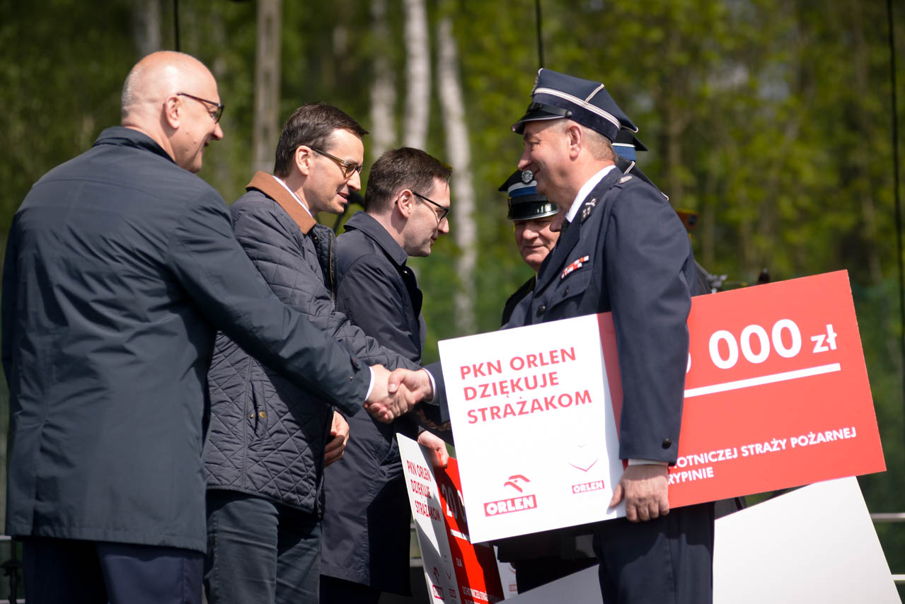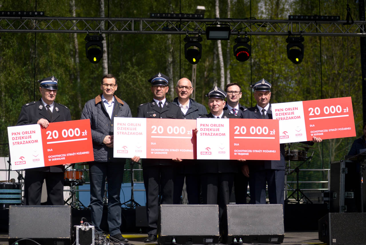 Piknik, który odbył się 5 maja 2019 r. w Rypinie, był także okazja do nagrodzenia Ochotniczych Straży Pożarnych, które działają już ponad 100 lat. Nagrody z rąk premiera Mateusza Morawieckiego, Joachima Brudzińskiego i prezesa PKN Orlen Daniela Obajtka odebrali przedstawiciele OSP z Rypina, Trąbina, Sadłowa i Skrwilna – warto zauważyć, że pierwsza z wymienionych OSP funkcjonuje już od 138 lat, OSP Trąbin i Sadłowo od 109 lat, a OSP Skrwilno od 102 lat.