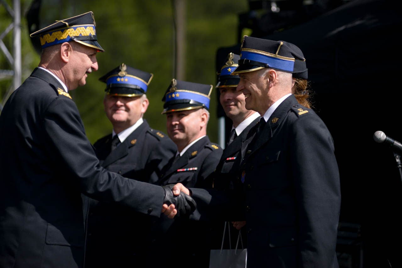 Komendant Główny Państwowej Straży Pożarnej gen. brygadier Leszek Suski wręczył dziesięciu strażakom z Państwowej Straży Pożarnej wyróżnienia za ich działalność na rzecz ochrony przeciwpożarowej. Nagrody otrzymali m.in. bryg. Paweł Warlikowski - Komendant Powiatowy PSP w Golubiu-Dobrzyniu, jeden z najbardziej doświadczonych strażaków w województwie kujawsko-pomorskim z ponad 37-letnim stażem służby, a także mł. bryg. Tomasz Czajka - dowódca Specjalistycznej Grupy Ratownictwa Wysokościowego.