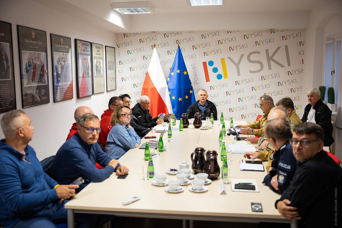 Wcześniej, w godzinach porannych, odbyło się posiedzenie sztabu kryzysowego w Nysie. Wzięli w nim udział m.in. szef MSWiA Tomasz Siemoniak, wiceminister Wiesław Leśniakiewicz, wojewoda opolska Monika Jurek oraz przedstawiciele służb, wojska, samorządów oraz innych instytucji.