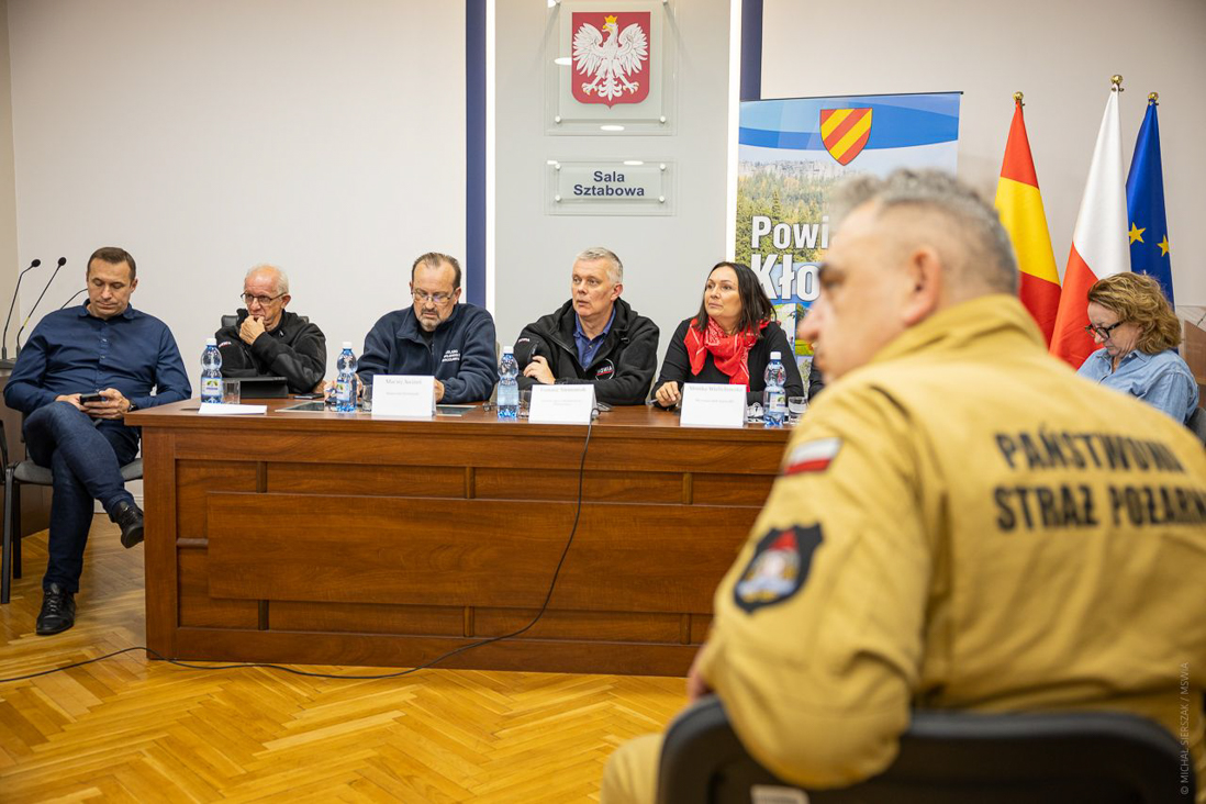 Posiedzenie sztabu kryzysowego w Kłodzku na Dolnym Śląsku