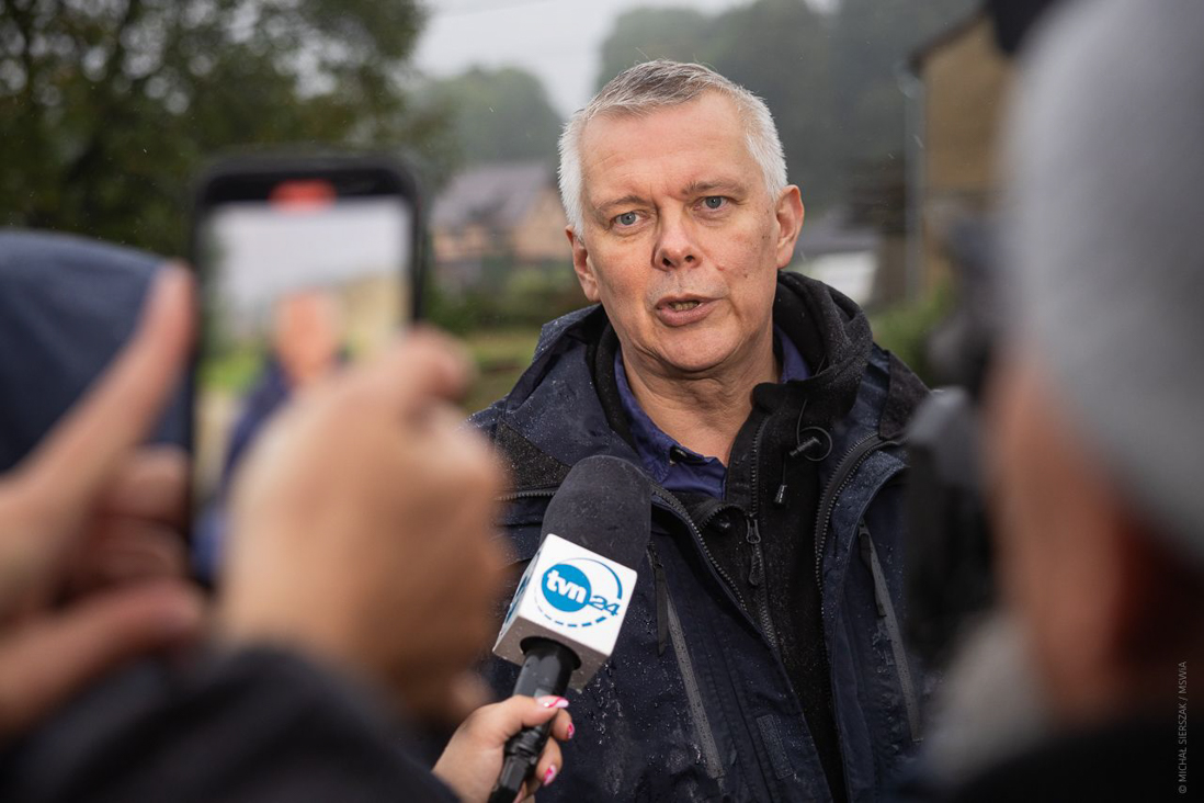 - Gorąco apeluję o to, żeby mieć zaufanie do służb państwowych. Jeżeli przychodzi policjant, strażak, przedstawiciel urzędu gminy i prosi o ewakuację, to proszę, żeby się do tej decyzji stosować – powiedział minister Tomasz Siemoniak. W sobotę szef MSWiA oraz wiceminister Wiesław Leśniakiewicz uczestniczyli w posiedzeniach sztabów kryzysowych w Kłodzku, a wcześniej w Nysie. Spotkali się też ze służbami działającymi w Jarnołtówku, Morowie i Głuchołazach.