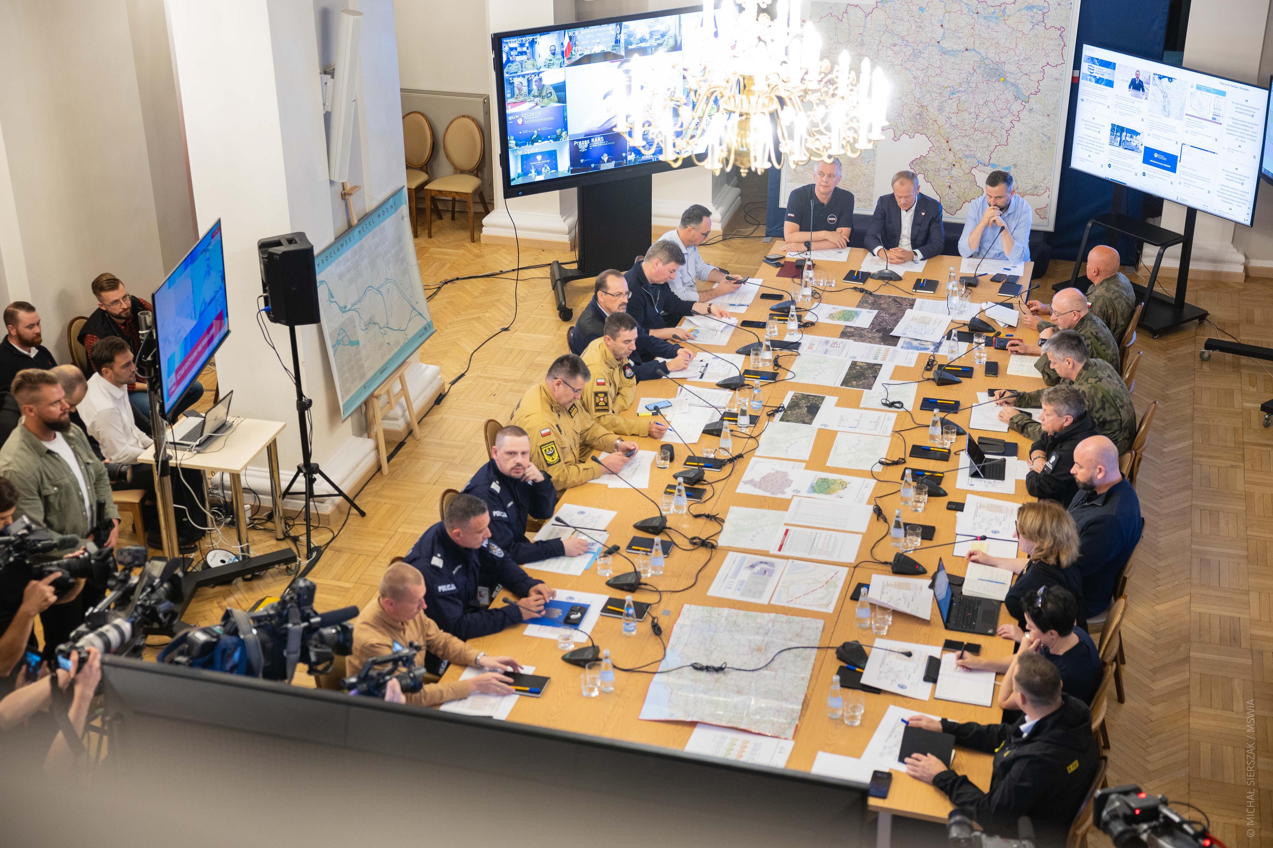 Dziś, zgodnie z zapowiedzią premiera Donalda Tuska odbyło się posiedzenie sztabu kryzysowego we Wrocławiu. Wzięli w nim udział m.in. wicepremier, szef MON Władysław Kosiniak-Kamysz, szef MSWiA Tomasz Siemoniak oraz przedstawiciele służb i samorządów. Rozmawiano o zmianach ustawowych przyjętych we wtorek podczas Rady Ministrów m.in. o projekcie ustawy, który wprowadza szereg rozwiązań ułatwiających radzenie sobie z jej skutkami. Omówiono też raporty z bieżącej sytuacji.