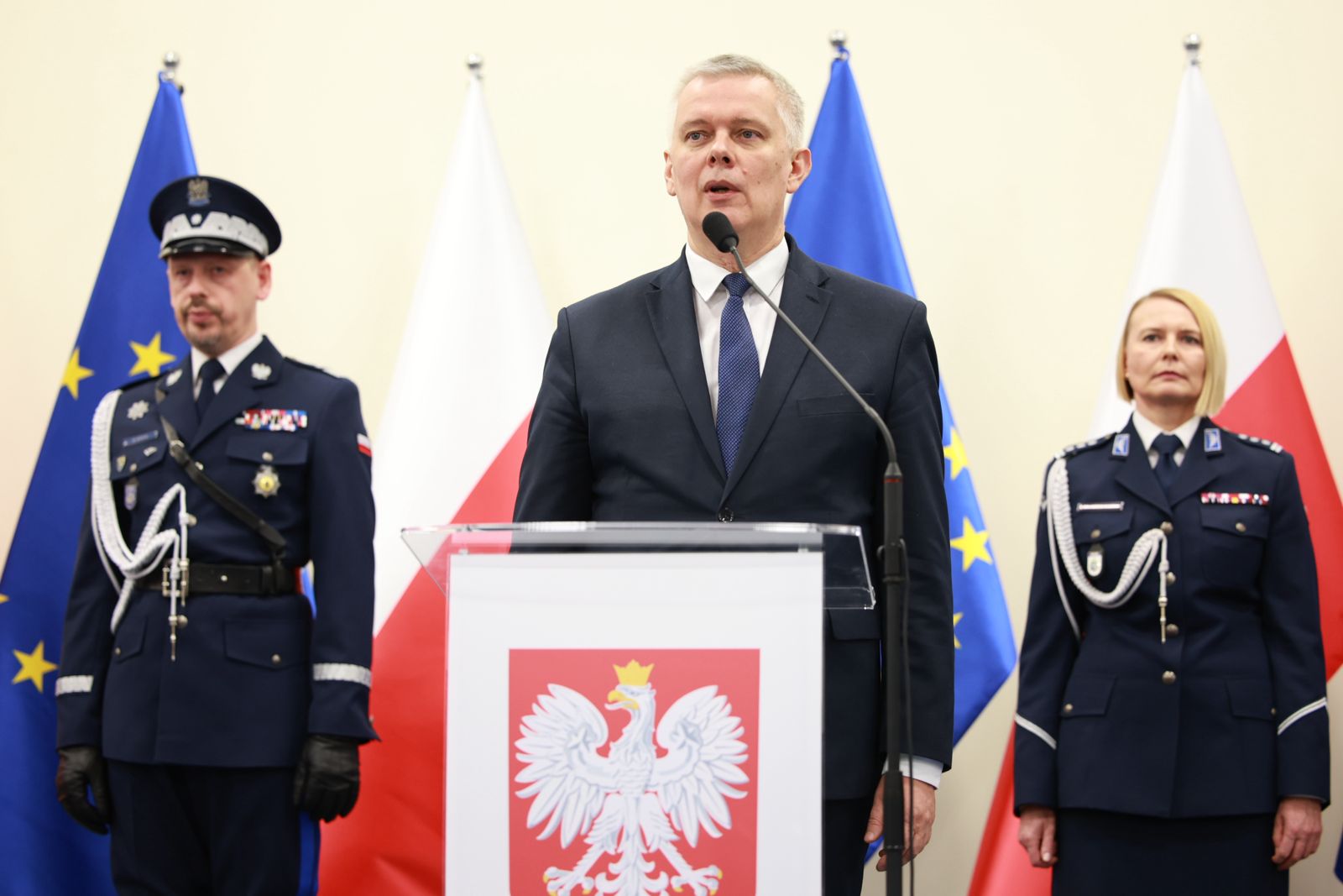 Wszystko to, co jest zawarte w rocie ślubowania, nie jest jakąś rutyną, ale po prostu prawdą o służbie w Policji. Życzę Wam, żeby Wasza służba układała się w sposób zgodny z aspiracjami, marzeniami, z Waszym powołaniem. Służba państwowa ma swoje wymogi, ograniczenia, ale jest też niezwykłym honorem