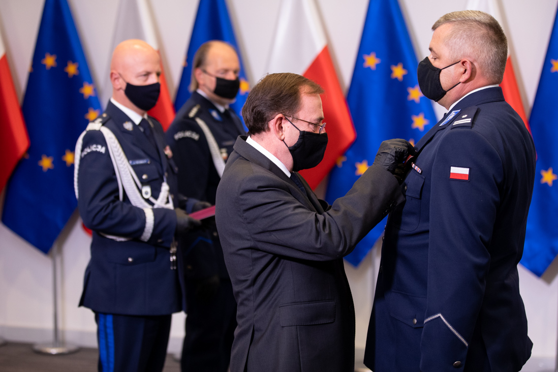 Podczas uroczystości pięciu policjantów otrzymało Brązowe Krzyże Zasługi, dwóch Złoty Medal za Długoletnią Służbę, dziewięciu zostało wyróżnionych Brązowym Medalem za Zasługi dla Policji, a jeden Srebrnym Medalem za Zasługi dla Policji. Podczas wręczania odznaczeń ministrowi Mariuszowi Kamińskiemu towarzyszyli gen. insp. Jarosław Szymczyk – komendant główny Policji i asp. sztab. Rafał Jankowski – przewodniczący Zarządu Głównego NSZZ Policjantów.