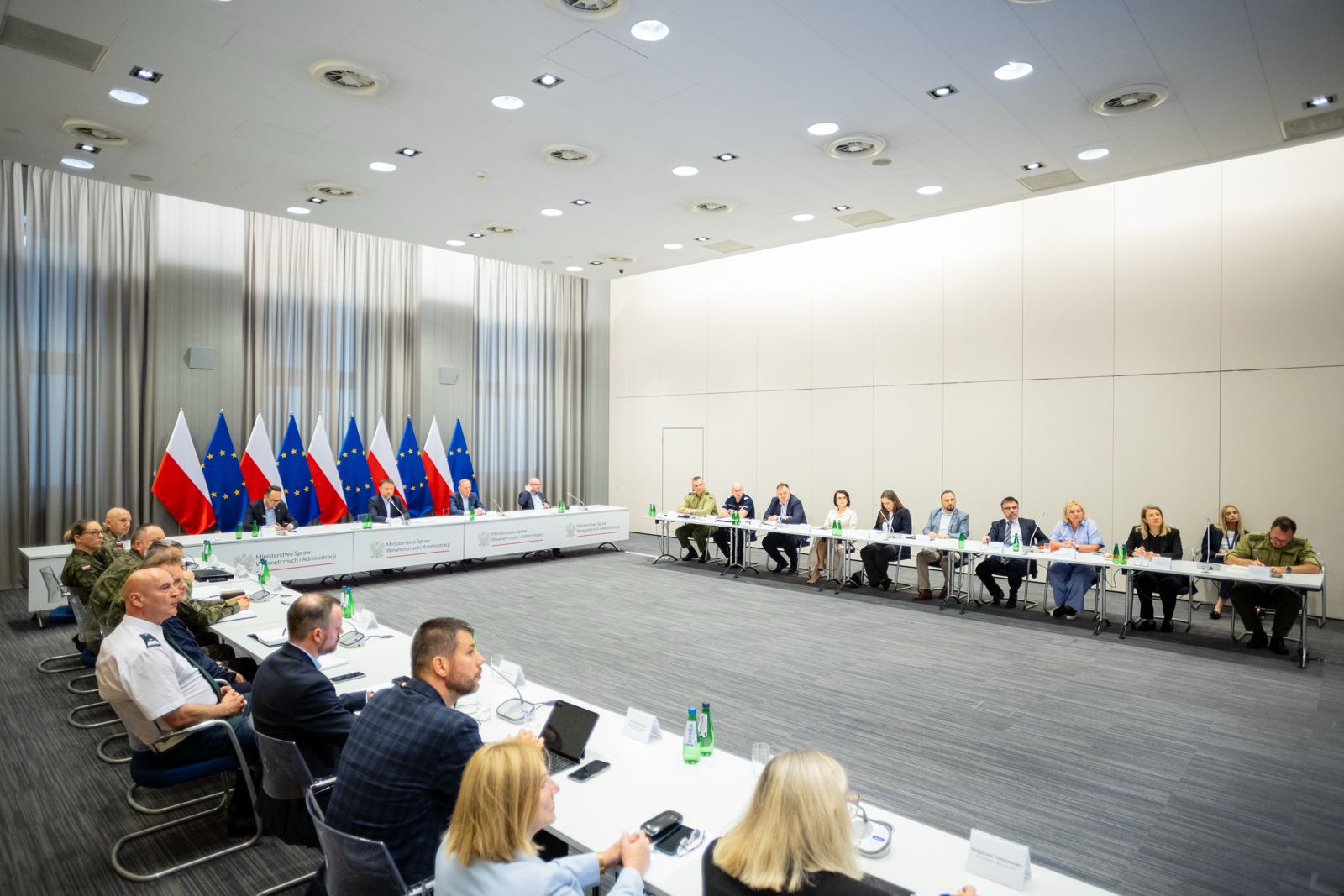 W niedzielę, 3 sierpnia br. o godz. 9:00 w siedzibie MSWiA odbyła się odprawa ministra Marcina Kierwińskiego z wojewodami oraz szefami służb, dotycząca bieżącej sytuacji na granicach. W spotkaniu uczestniczył także minister infrastruktury Dariusz Klimczak oraz wiceministrowie spraw wewnętrznych i administracji Czesław Mroczek i Maciej Duszczyk, wojewodowie regionów przygranicznych, przedstawiciele Straży Granicznej, Policji, Żandarmerii Wojskowej, Wojsk Obrony Terytorialnej, Straży Ochrony Kolei, PKP Intercity, Generalnej Dyrekcji Dróg Krajowych i Autostrad oraz Głównego Inspektoratu Transportu Drogowego.