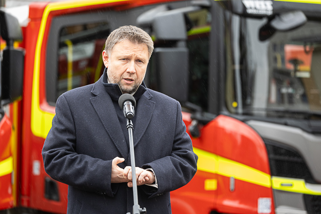 W środę (21 lutego br.) minister Marcin Kierwiński uczestniczył w uroczystości przekazania pojazdów pożarniczych dla Komendy Miejskiej PSP m.st. Warszawy. Strażacy otrzymali sześć nowych pojazdów, które pomogą im w codziennej służbie. W wydarzeniu wziął udział także prezydent m.st. Warszawy Rafał Trzaskowski.