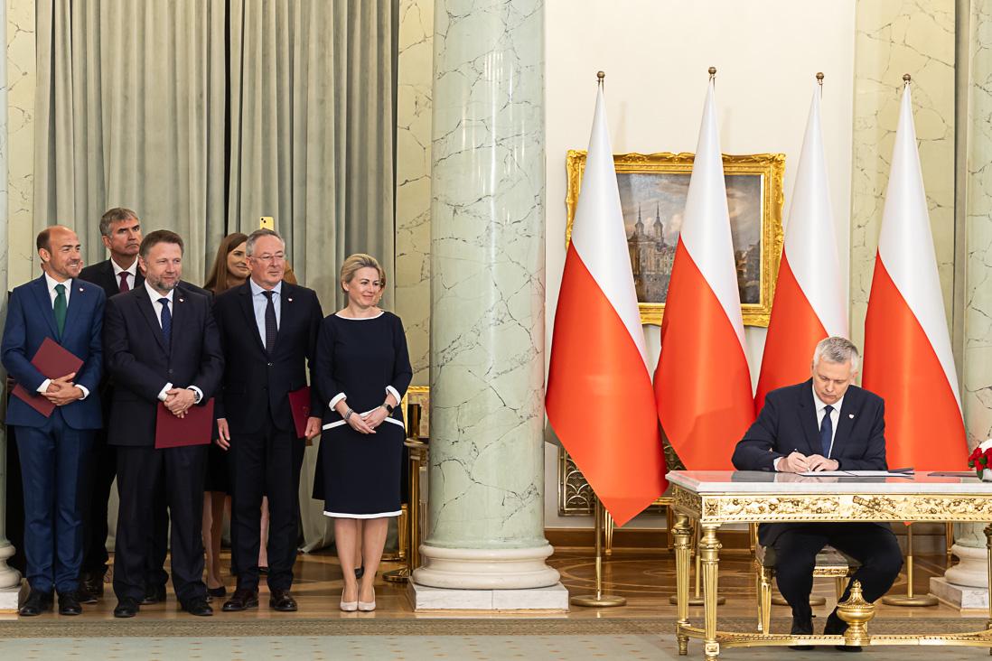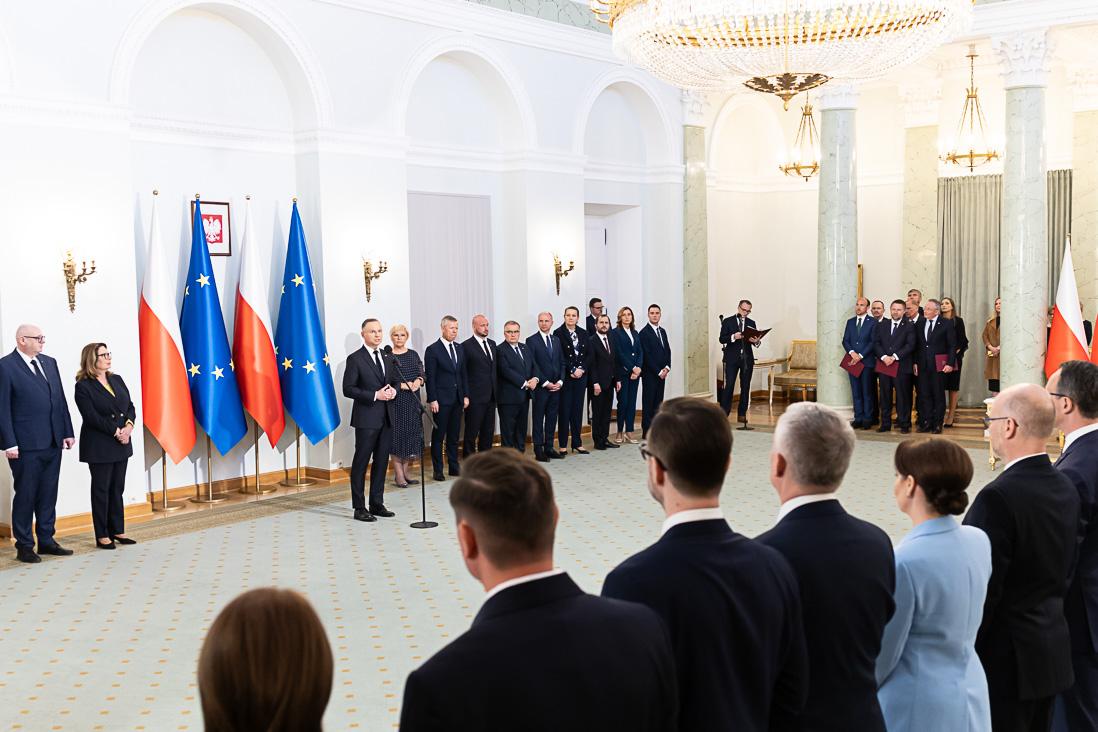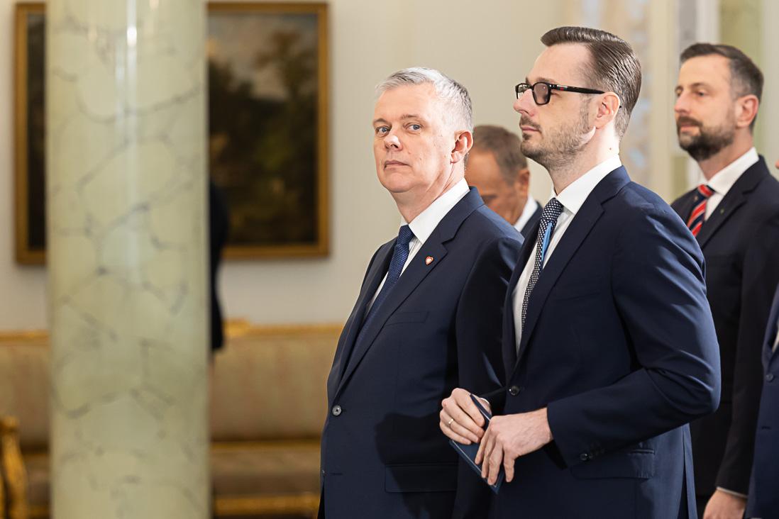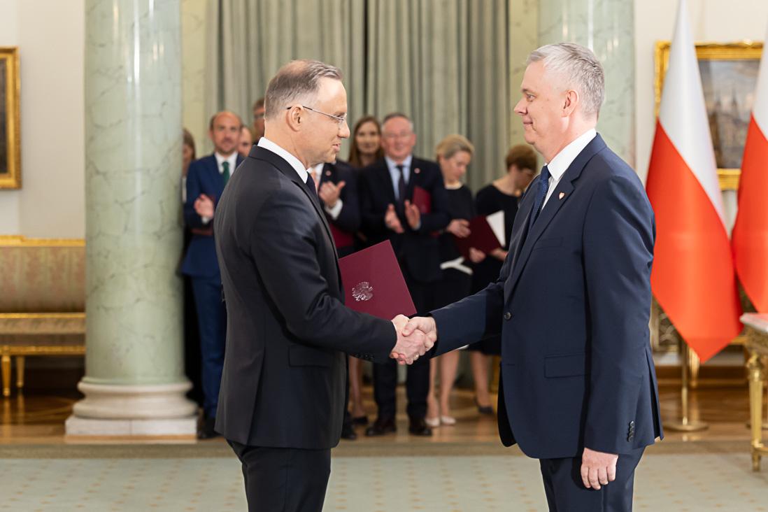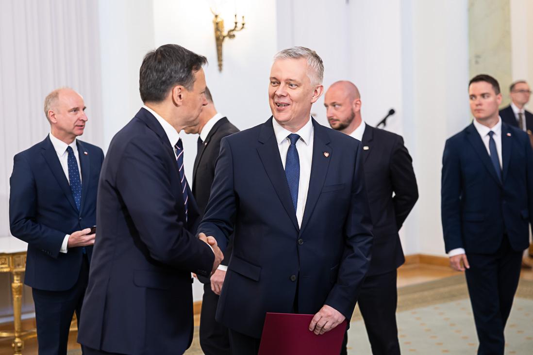 Podczas uroczystości w Pałacu Prezydenckim Tomasz Siemoniak odebrał z rąk Prezydenta RP Andrzeja Dudy powołanie na stanowisko szefa MSWiA i złożył przysięgę.