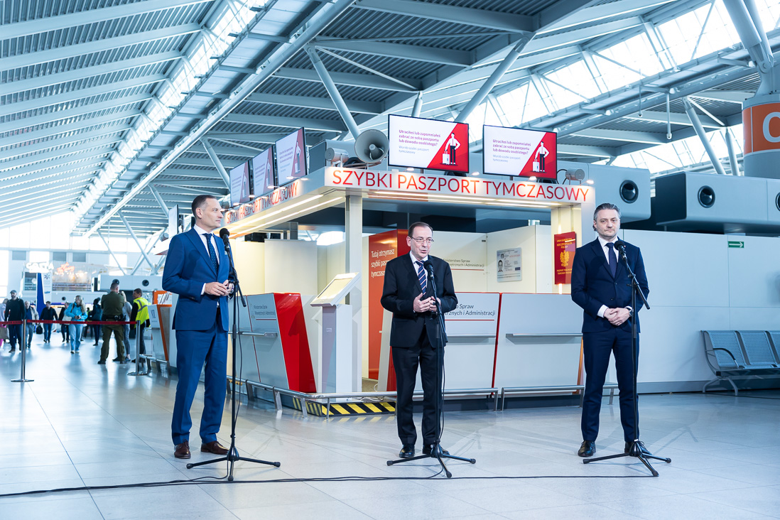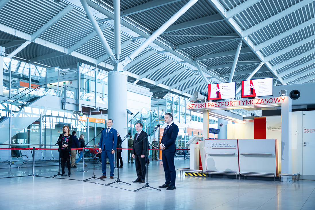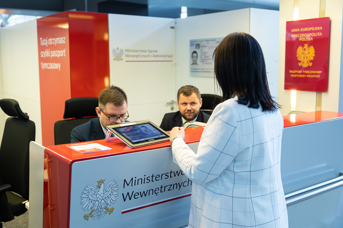 W czwartek, 20 kwietnia 2023 r. ministrowie Mariusz Kamiński i Bartosz Grodecki ogłosili uruchomienie punktu wydawania paszportów tymczasowych na Lotnisku Chopina w Warszawie. W wydarzeniu uczestniczył także prezes Polskich Portów Lotniczych Stanisław Wojtera.