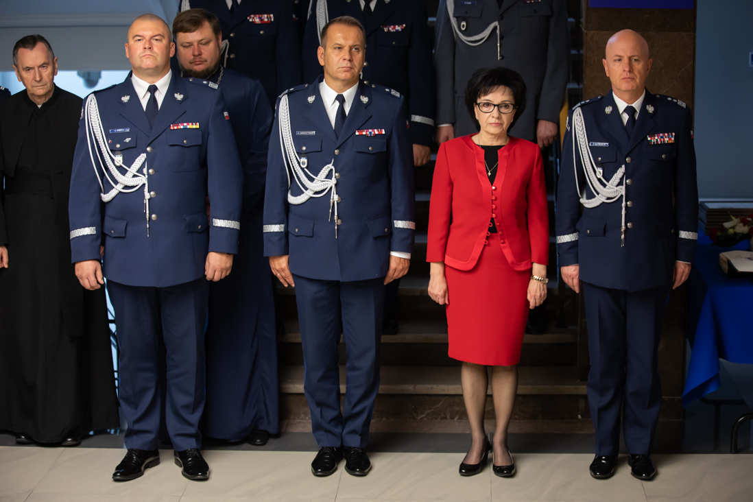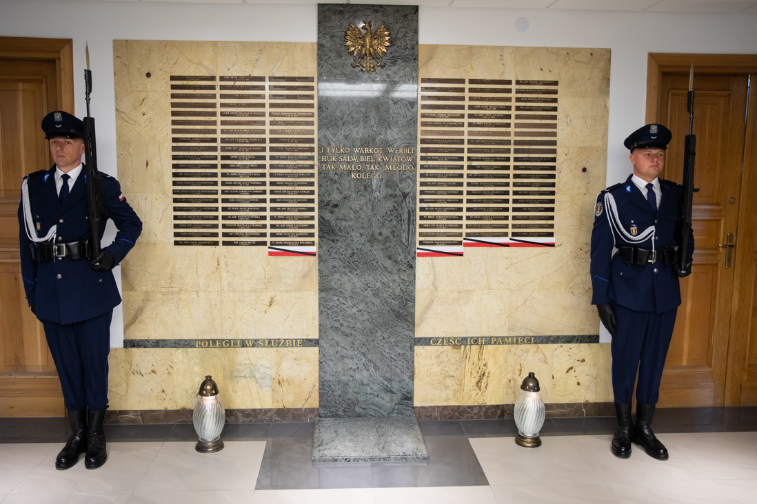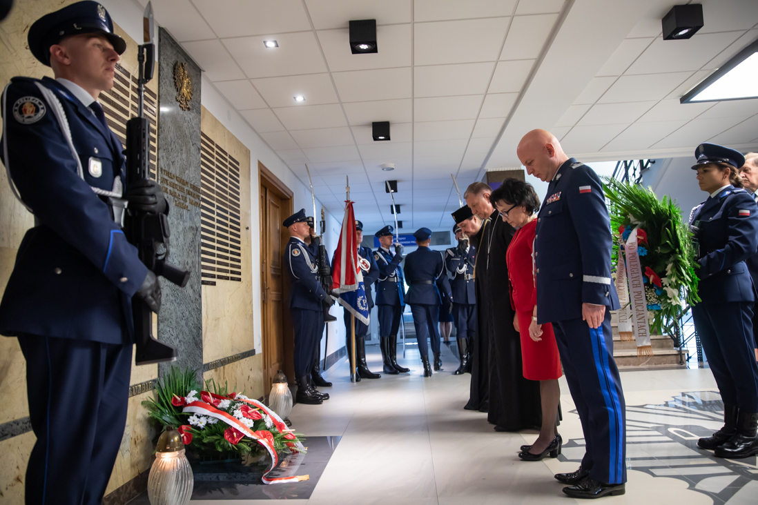 Oddanie hołdu poległym policjantom to jedno z najważniejszych wydarzeń corocznych obchodów Święta Policji. Podczas uroczystości upamiętniono czterech tragicznie zmarłych funkcjonariuszy: asp. Marka Mieczkowskiego, mł. asp. Adama Łobockiego, mł. asp. Krzysztofa Węglińskiego oraz mł. asp. Piotra Gąsiorka. Ich nazwiska zostały umieszczone na Tablicy Pamięci oraz wpisane do Księgi Pamięci policjantów poległych na służbie.