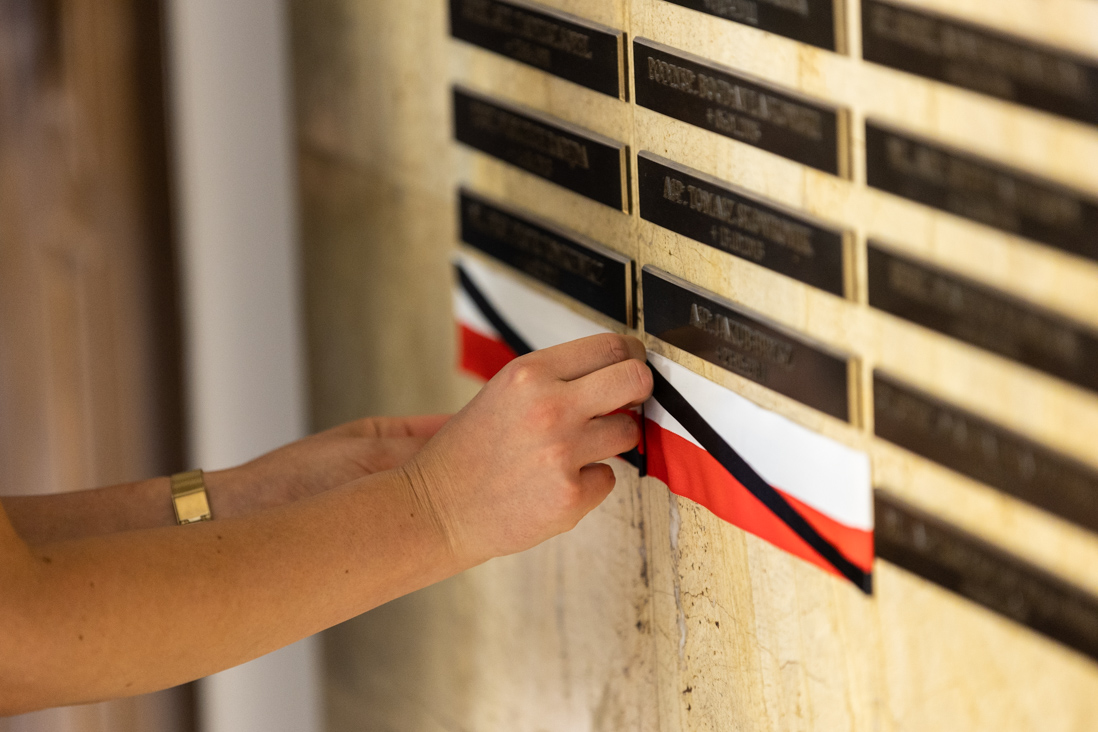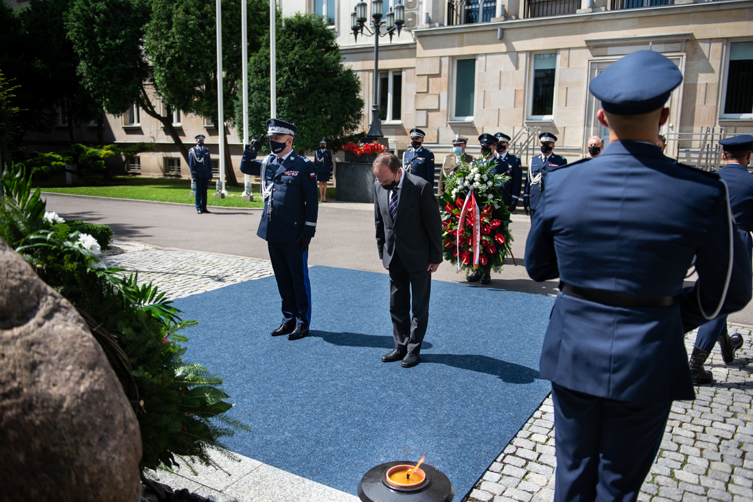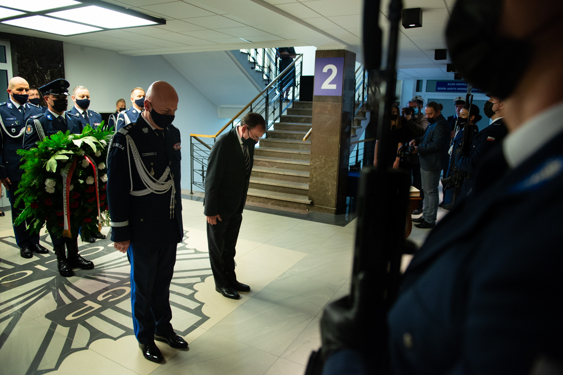 Oddanie hołdu poległym policjantom to jedno z najważniejszych wydarzeń corocznych obchodów Święta Policji. Podczas uroczystości upamiętniono dwóch tragicznie zmarłych funkcjonariuszy: st. sierż. Marcina Szpyruka oraz asp. Michała Kędzierskiego. Ich nazwiska zostały umieszczone na Tablicy Pamięci oraz wpisane do Księgi Pamięci policjantów poległych na służbie. Minister Mariusz Kamiński złożył kwiaty pod Tablicą Pamięci oraz przy Obelisku „Poległym Policjantom – Rzeczpospolita Polska”.