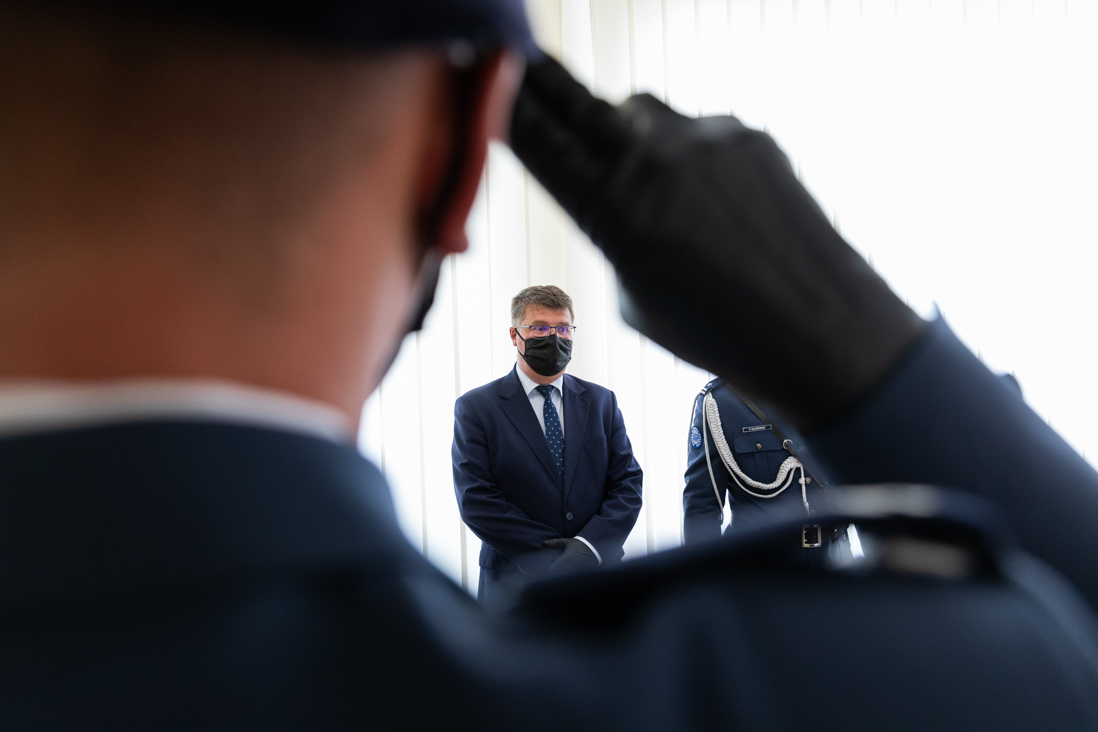 Wiceszef MSWiA razem z przedstawicielami rodzin funkcjonariuszy, którzy zginęli na służbie, wziął również udział w uroczystym odsłonięciu pamiątkowych tablic na terenie siedziby Służby Ochrony Państwa.