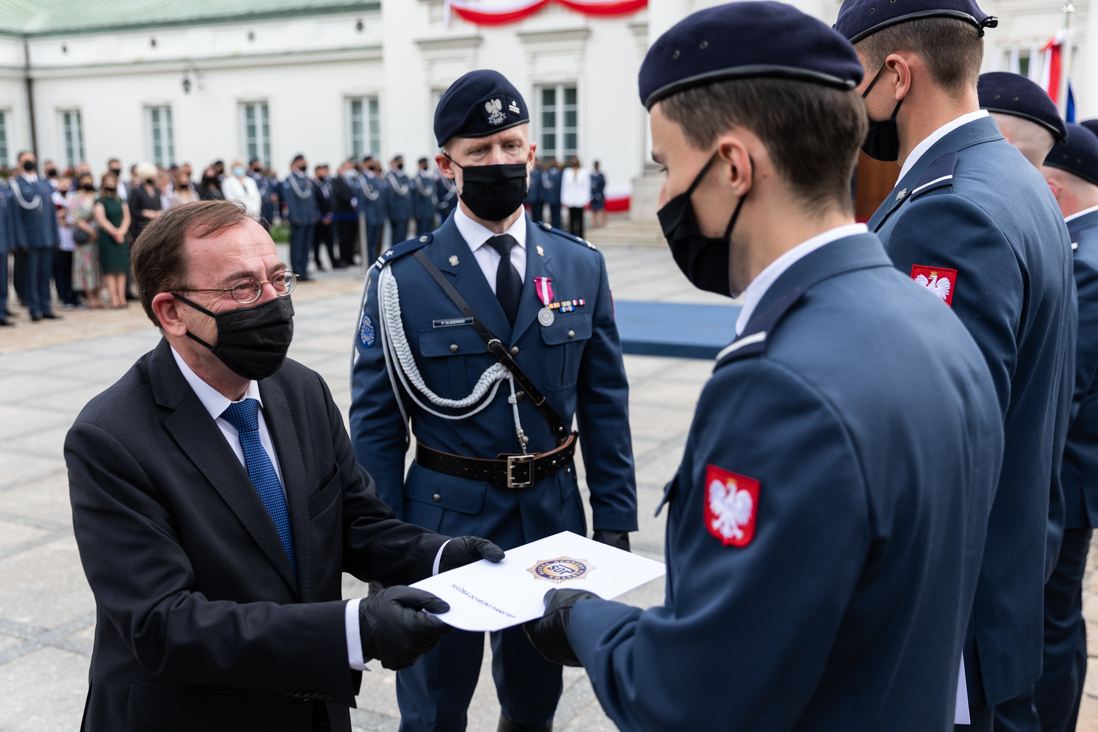 Minister Mariusz Kamiński pogratulował też promowanym na pierwszy stopień oficerski.