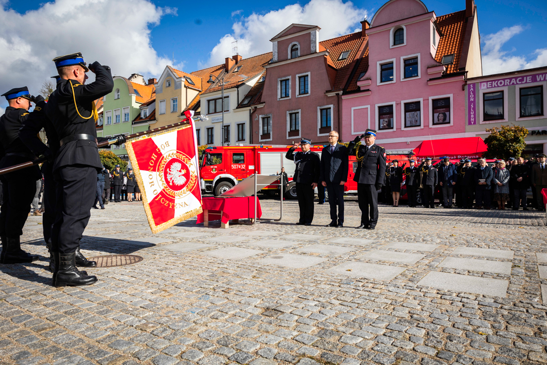 Podczas wydarzenia wiceminister Błażej Poboży przekazał na ręce komendanta powiatowego PSP w Nidzicy nowy sztandar.