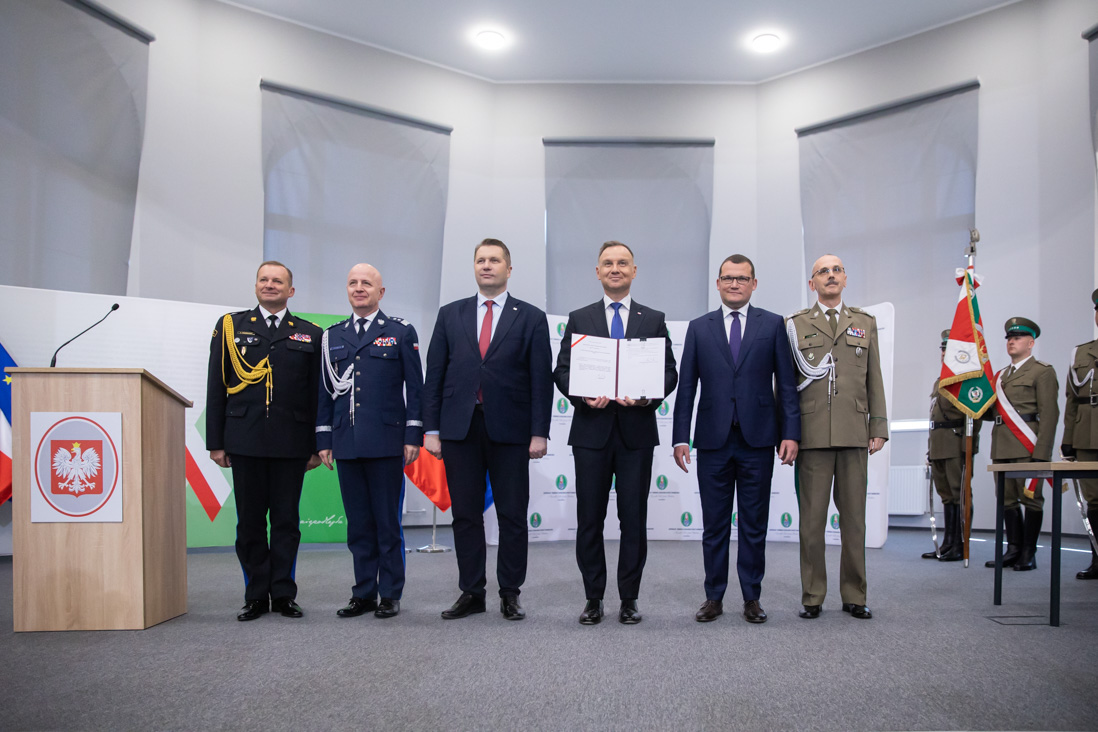 W poniedziałek, 29 maja br. wiceminister Paweł Szefernaker wziął udział w uroczystości podpisania przez Prezydenta RP Andrzeja Dudę ustawy umożliwiającej powstanie Wyższej Szkoły Straży Granicznej, a także zmieniającej nazwy Wyższej Szkoły Policji w Szczytnie na Akademię Policji w Szczytnie oraz Szkoły Głównej Służby Pożarniczej na Akademię Pożarniczą. Wydarzenie zostało zorganizowane w Centralnym Ośrodku Szkolenia Straży Granicznej w Koszalinie.