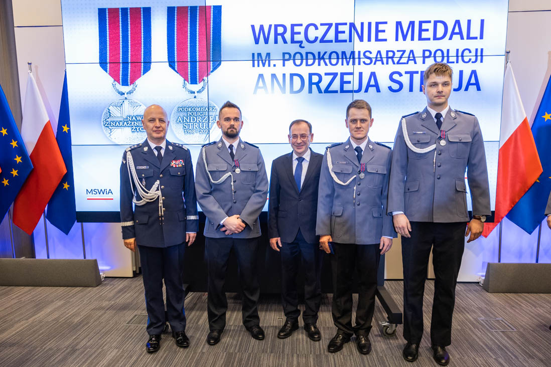 W poniedziałek, 13 lutego br. Minister Spraw Wewnętrznych i Administracji Mariusz Kamiński wręczył medale im. podkomisarza Policji Andrzeja Struja. Odznaczenia odebrało 86 policjantów z całego kraju. W uroczystości wzięli także udział Komendant Główny policji gen. Jarosław Szymczyk, Dyrektor Generalny MSWiA Dariusz Nowak oraz żona podkom. Andrzeja Struja Anna Struj. Przez ostatnie dwa lata medalami zostało odznaczonych 210 funkcjonariuszy Policji.