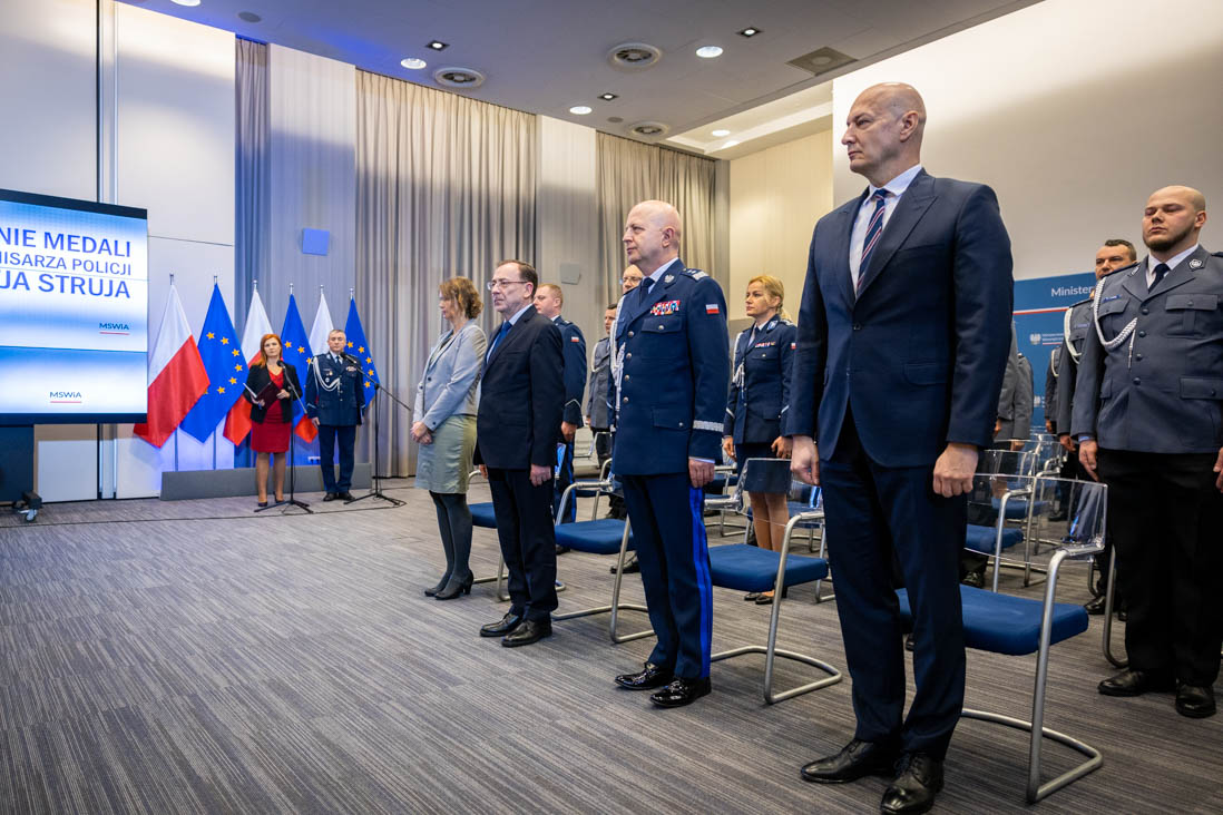Szef MSWiA Mariusz Kamiński w swoim wystąpieniu podkreślił, że odznaczeni dziś policjanci narażali własne życie ratując innych nie tylko będąc na służbie, ale również w czasie wolnym.
