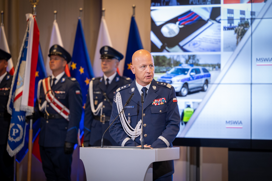 Podczas uroczystości Komendant Główny Policji mówił, że mieszkańcy naszego kraju mogą zawsze liczyć na wsparcie Policji.