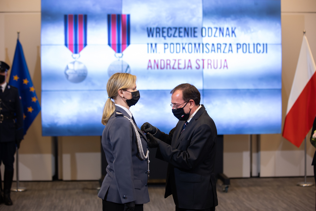 Odznakę im. podkomisarza Policji Andrzeja Struja odebrali dziś m.in.: asp. szt. Andrzej Krukowski, który podjął interwencję podczas urlopu, widząc osoby tonące w morzu, sierż. szt. Maria Myszakowska-Łyjak, która w czasie wolnym od służby pomogła ofiarom wypadku drogowego oraz st. sierż. Łukasz Deszcz i mł. asp. Paweł Świdziński, którzy uratowali dwie starsze osoby z pożaru.