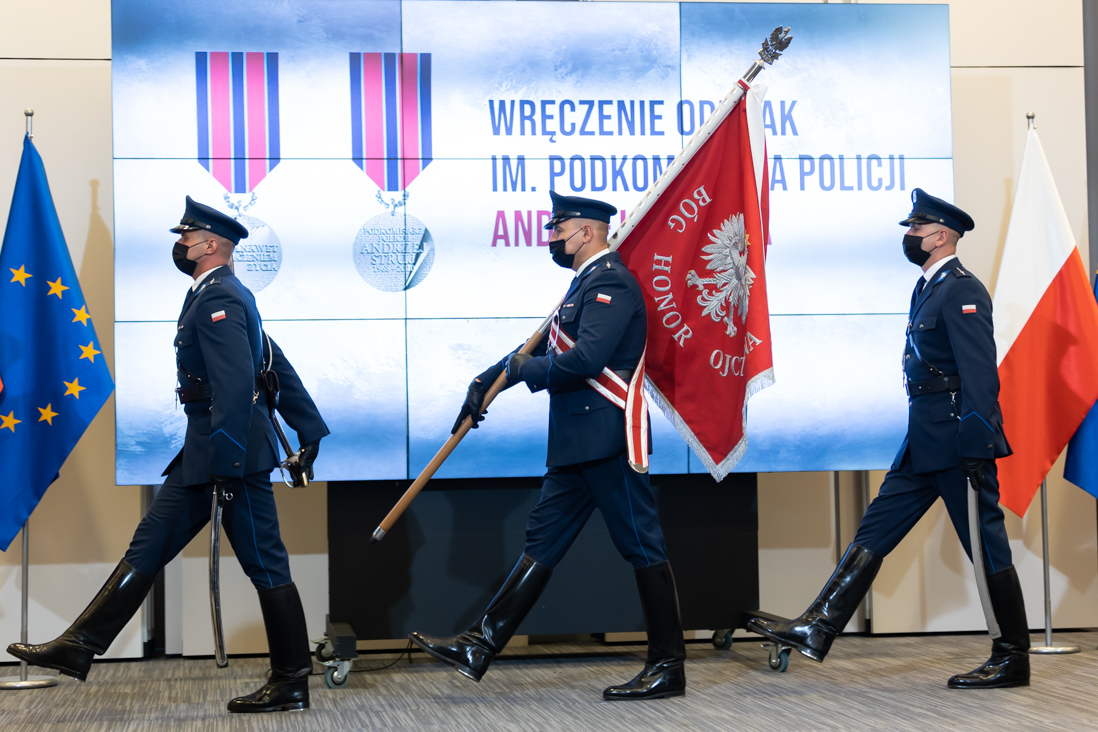 – Bardzo Wam dziękuję za to, co robicie. Dbacie o honor służby, honor funkcjonariusza – powiedział minister Mariusz Kamiński do policjantów, którzy odebrali dziś (20 lipca br.) odznaki im. podkomisarza Policji Andrzeja Struja. Odznaczenia zostały przyznane 40 funkcjonariuszom z całego kraju. W uroczystości w MSWiA wzięli także udział wiceministrowie: Maciej Wąsik, Błażej Poboży, Bartosz Grodecki oraz gen. insp. Jarosław Szymczyk, komendant główny Policji.