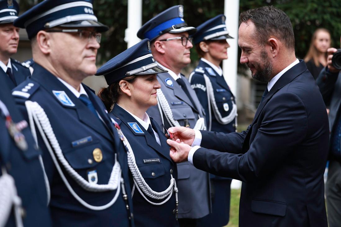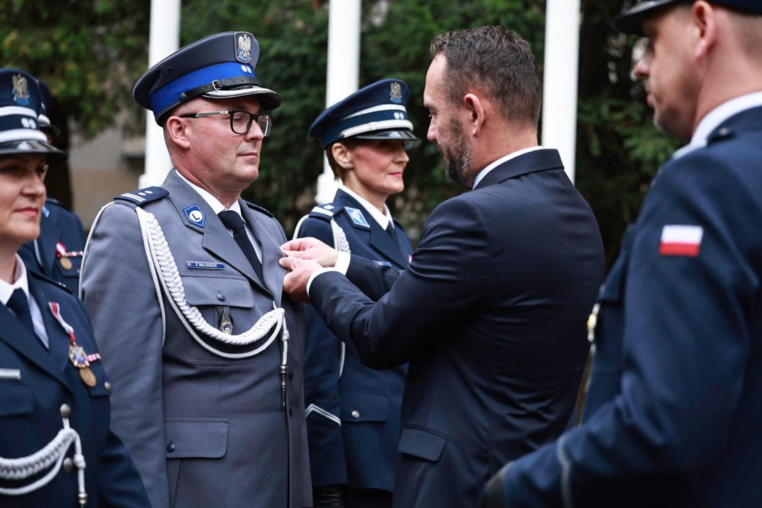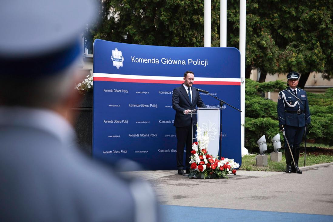 Po odegraniu i odśpiewaniu hymnu, w trakcie którego na maszt podniesiono polską flagę, głos zabrał wiceminister Tomasz Szymański. Podziękował policjantom za ich służbę.
