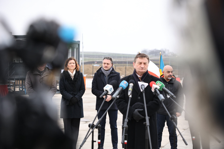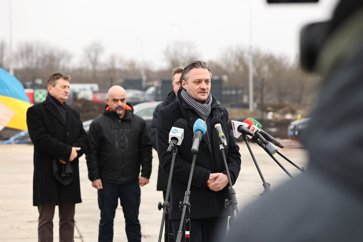 Dziś, 13 lutego br. od godz. 7:00, w miejscu powstającego przejścia granicznego z Ukrainą Malhowice-Niżankowice, uruchomiono odprawę pojazdów ciężarowych o dopuszczalnej masie całkowitej powyżej 7,5 tony, przemieszczających się bez ładunku. W konferencji prasowej zorganizowanej przy przejściu granicznym wziął udział wiceminister Bartosz Grodecki.