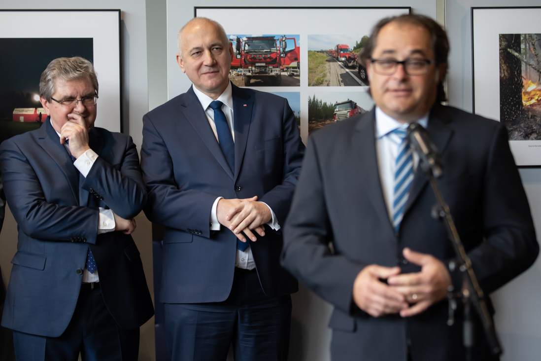 Latem ubiegłego roku polscy strażacy podczas 14-dniowej misji pomagali szwedzkim służbom w walce z gigantycznymi pożarami lasów. Te wydarzenia opisuje wystawa zdjęć, którą we wtorek (12 lutego br.) w siedzibie Parlamentu Europejskiego w Strasburgu otworzył minister Joachim Brudziński wraz z ministrem Markiem Gróbarczykiem, Czesławem Hocem - posłem do Parlamentu Europejskiego, a także prof. Ryszardem Legutko – Przewodniczącym Grupy Europejskich Konserwatystów i Reformatorów.